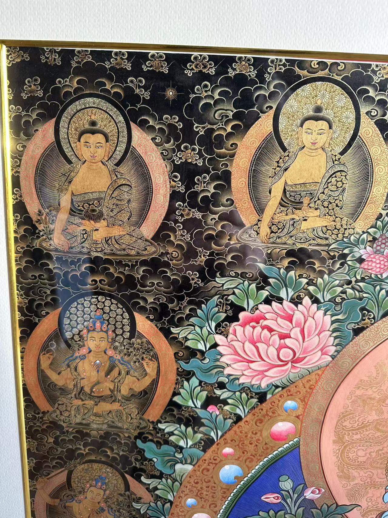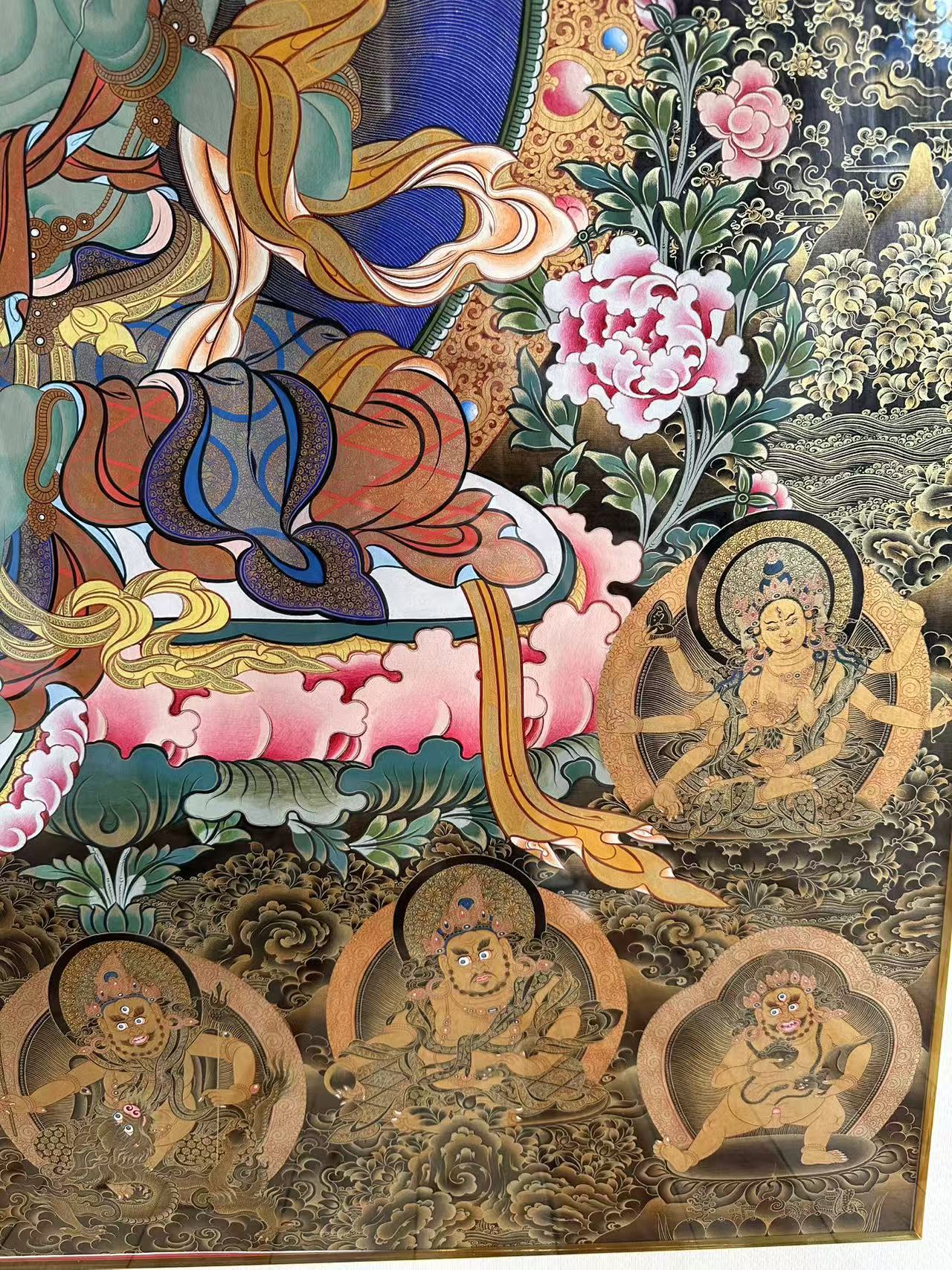 | 唐卡是歷史的瑰寶,現(xiàn)已被例入國家非物質(zhì)文化遺產(chǎn)名錄,得到了高度的重視和保護(hù)。同時由于顏料的珍稀、繪制周期長、工藝復(fù)雜大大增強(qiáng)了其珍藏價值。一幅好的作品可遇不可求,近年來唐卡已成為收藏界炙手可熱的藏品。 | 唐卡的形式便于攜帶,其內(nèi)容體現(xiàn)了藏傳佛教的莊重、神圣、華貴,被稱為“移動的佛像”。同時也是修行者積累善業(yè),追尋心靈的平靜與安寧的一個過程。 | 唐卡的內(nèi)容包羅萬象,它以圖像的方式承載著藏族文化精髓,是藏族智慧的結(jié)晶,廣泛傳播了藏地的文化、歷史和宗教理論。 | 唐卡絢麗的色彩、流暢的線條、嚴(yán)謹(jǐn)?shù)慕Y(jié)構(gòu),都充滿著濃郁的高原和游牧民族風(fēng)情,無疑是難得的藝術(shù)珍品。值得一提的是唐卡繪制顏料全部為天然礦物顏料,畫面效果艷麗,可以保存千年而不變色。 |