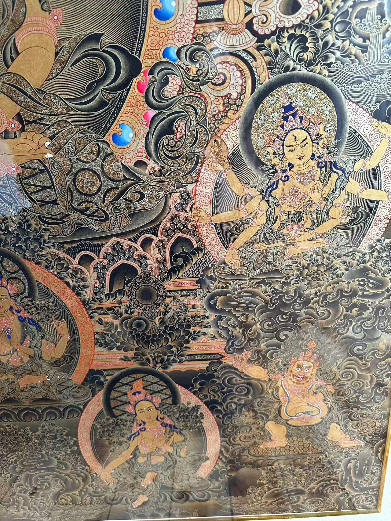 | 唐卡是歷史的瑰寶,現(xiàn)已被例入國家非物質(zhì)文化遺產(chǎn)名錄,得到了高度的重視和保護(hù)。同時由于顏料的珍稀、繪制周期長、工藝復(fù)雜大大增強了其珍藏價值。一幅好的作品可遇不可求,近年來唐卡已成為收藏界炙手可熱的藏品。 | 唐卡的形式便于攜帶,其內(nèi)容體現(xiàn)了藏傳佛教的莊重、神圣、華貴,被稱為“移動的佛像”。同時也是修行者積累善業(yè),追尋心靈的平靜與安寧的一個過程。 | 唐卡的內(nèi)容包羅萬象,它以圖像的方式承載著藏族文化精髓,是藏族智慧的結(jié)晶,廣泛傳播了藏地的文化、歷史和宗教理論。 | 唐卡絢麗的色彩、流暢的線條、嚴(yán)謹(jǐn)?shù)慕Y(jié)構(gòu),都充滿著濃郁的高原和游牧民族風(fēng)情,無疑是難得的藝術(shù)珍品。值得一提的是唐卡繪制顏料全部為天然礦物顏料,畫面效果艷麗,可以保存千年而不變色。 |