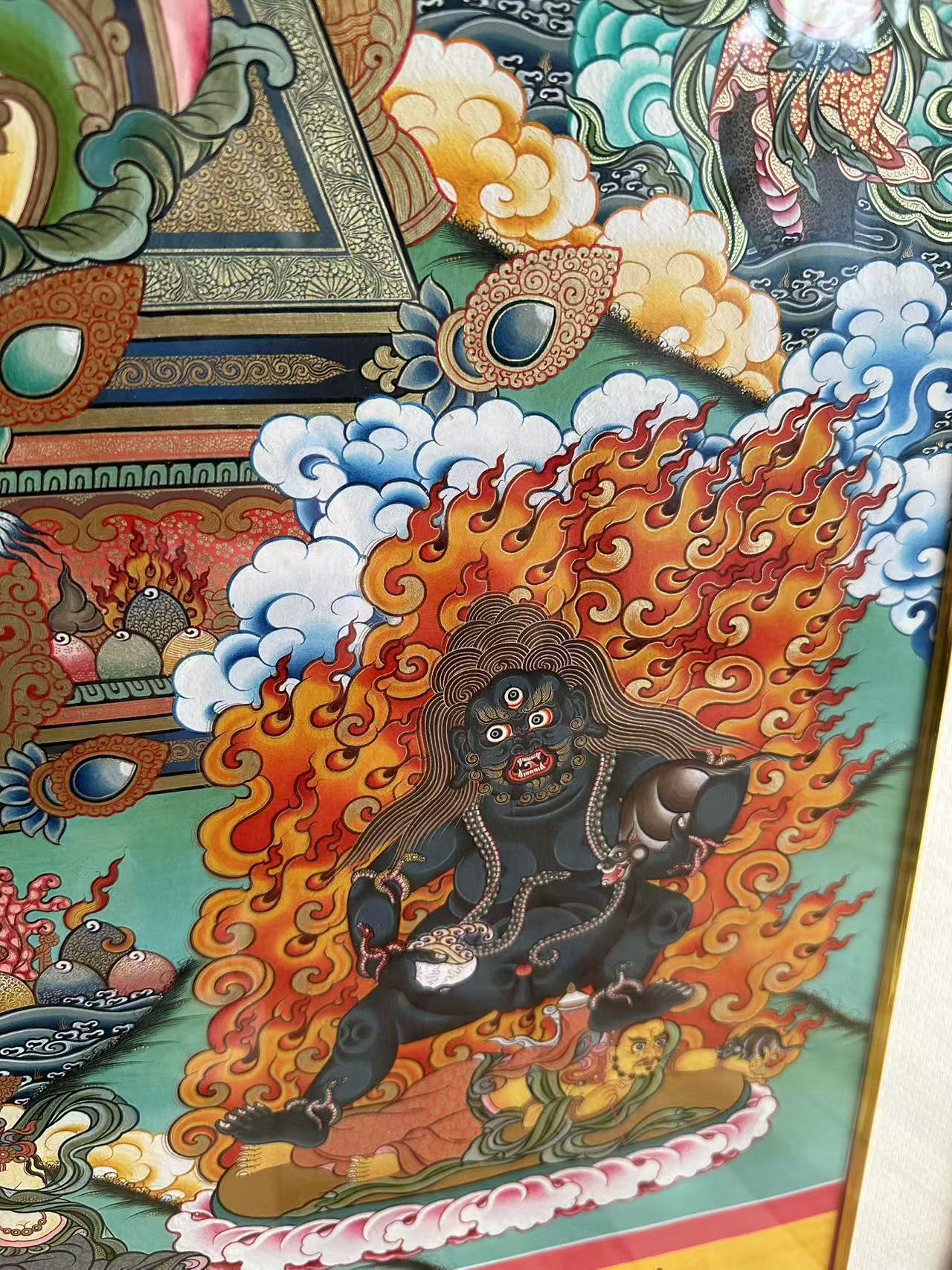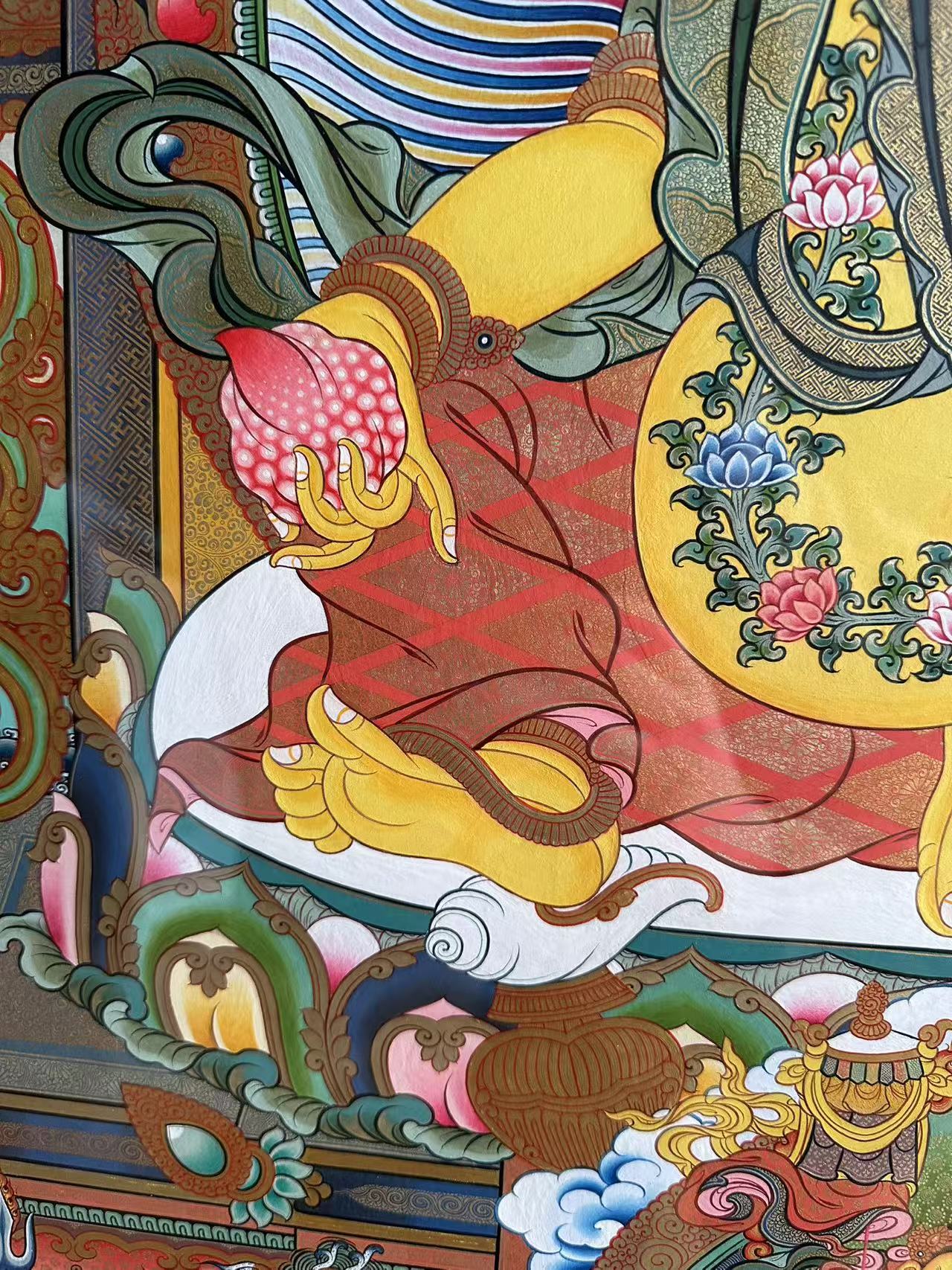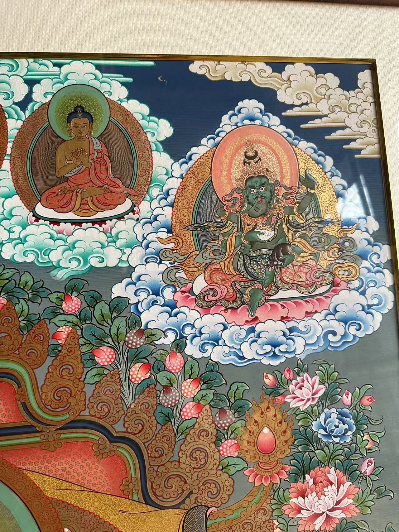 | 唐卡是歷史的瑰寶,現(xiàn)已被例入國家非物質(zhì)文化遺產(chǎn)名錄,得到了高度的重視和保護。同時由于顏料的珍稀、繪制周期長、工藝復雜大大增強了其珍藏價值。一幅好的作品可遇不可求,近年來唐卡已成為收藏界炙手可熱的藏品。 | 唐卡的形式便于攜帶,其內(nèi)容體現(xiàn)了藏傳佛教的莊重、神圣、華貴,被稱為“移動的佛像”。同時也是修行者積累善業(yè),追尋心靈的平靜與安寧的一個過程。 | 唐卡的內(nèi)容包羅萬象,它以圖像的方式承載著藏族文化精髓,是藏族智慧的結(jié)晶,廣泛傳播了藏地的文化、歷史和宗教理論。 | 唐卡絢麗的色彩、流暢的線條、嚴謹?shù)慕Y(jié)構(gòu),都充滿著濃郁的高原和游牧民族風情,無疑是難得的藝術(shù)珍品。值得一提的是唐卡繪制顏料全部為天然礦物顏料,畫面效果艷麗,可以保存千年而不變色。 |