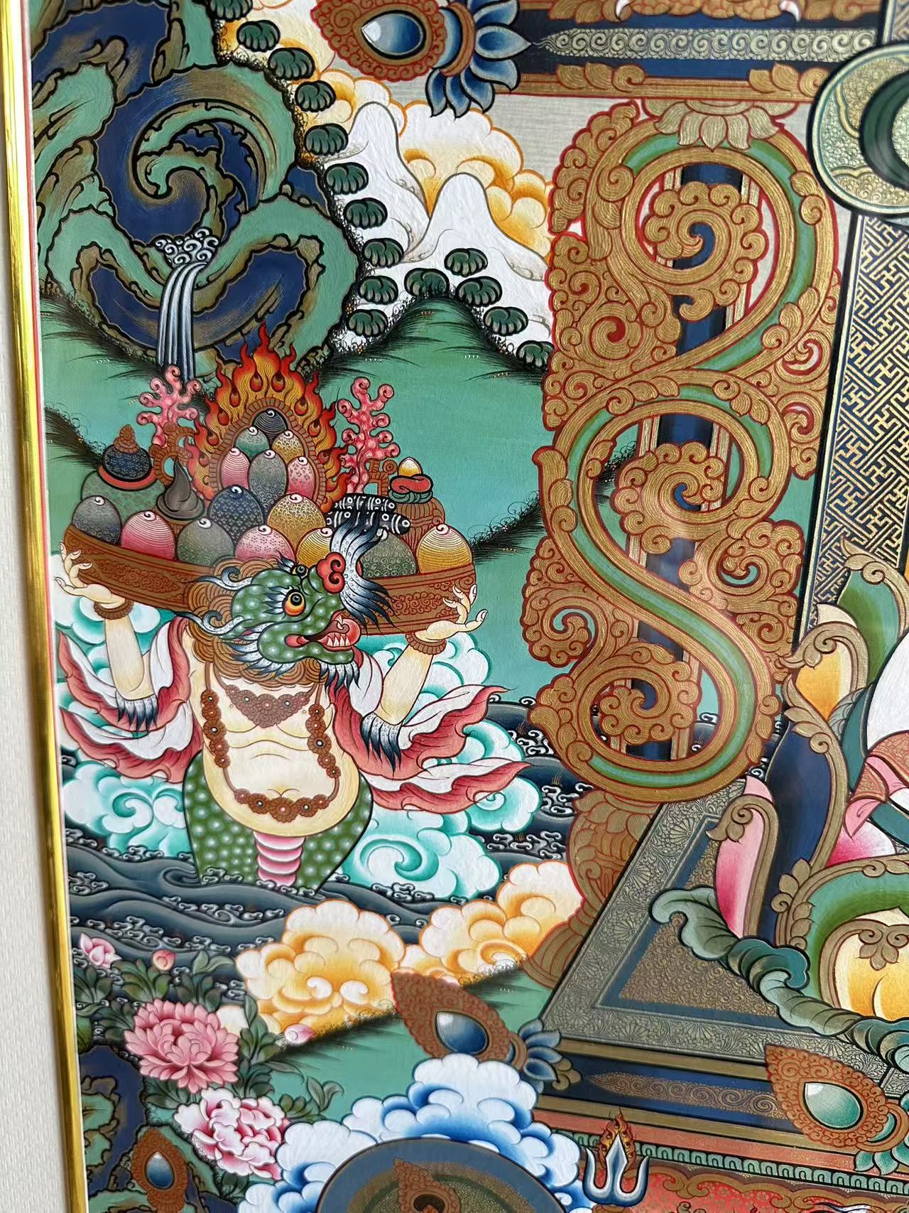 ![]() | 唐卡很美,我們希望讓唐卡走進大家的生活,所以我們開設(shè)了唐卡定制的服務(wù)平臺。我們有唐卡原產(chǎn)地的幾十位畫師,他們都是從事唐卡繪畫十幾年甚至幾十年的畫師,對于唐卡的理解非常深厚,掌握唐卡繪畫的各種技巧,他們繪制的唐卡已經(jīng)得到業(yè)內(nèi)外許多人士的認可。我們結(jié)合資深畫師的繪畫功力和專業(yè)藏品顧問的敬業(yè)精神,來回報您的信任和選擇。 |