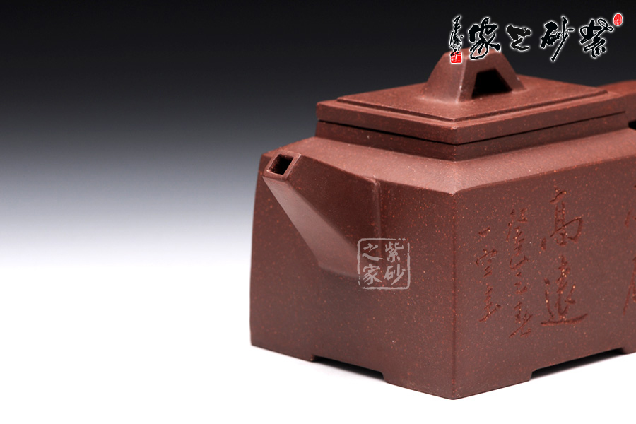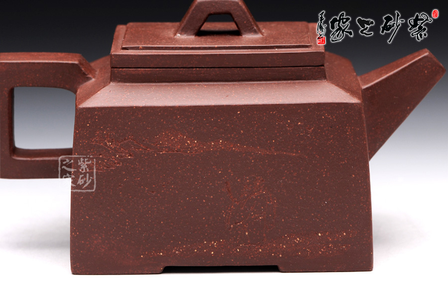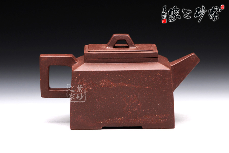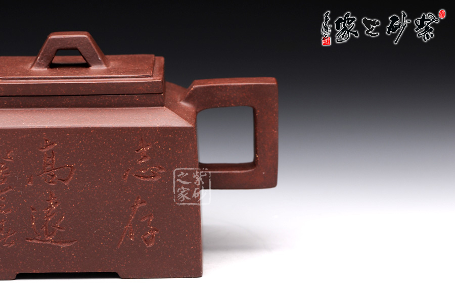 此壺名為逸士壺,由原礦底槽清泥質(zhì)制成,古樸雅致,底蘊(yùn)深沉,在方形的壺身、壺嘴、壺蓋和壺把的襯托下,更顯大氣沉穩(wěn),硬朗爽健。若把此壺堪比人,則它堪稱是位居士,擁有健碩的身材更有深遠(yuǎn)的志向和博大的胸懷。該壺的刻繪內(nèi)容,既是此壺性格的真實(shí)寫照。壺正面刻繪了“志存高遠(yuǎn)”四個(gè)字,壺背面刻繪了一幅居士吟詠于山水前的畫面,生動(dòng)形象,意味深遠(yuǎn)。此壺底蘊(yùn)十足,氣質(zhì)超凡脫俗,不僅實(shí)用,更值得把玩欣賞!