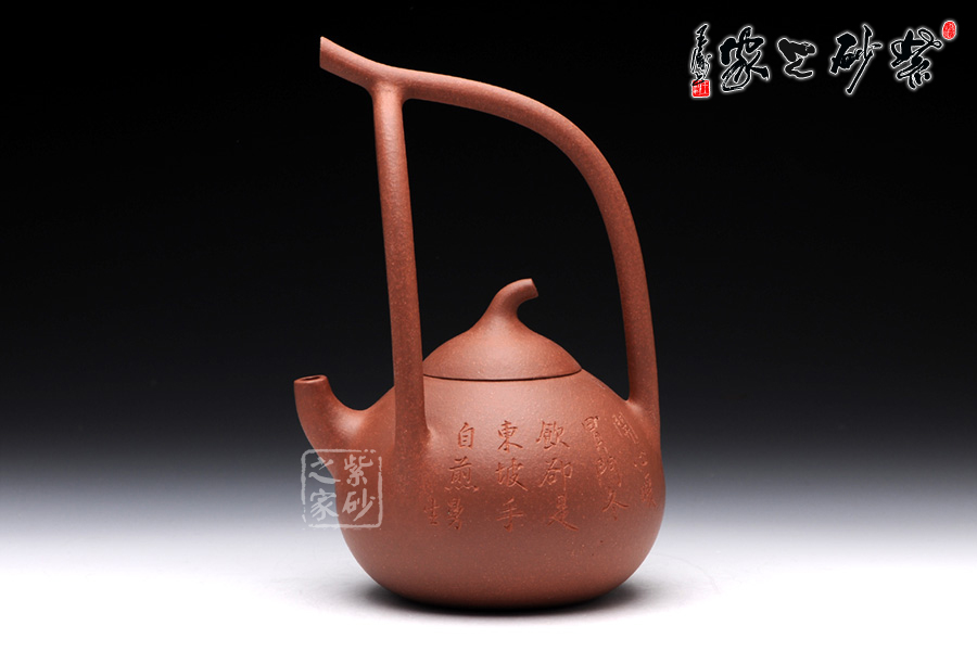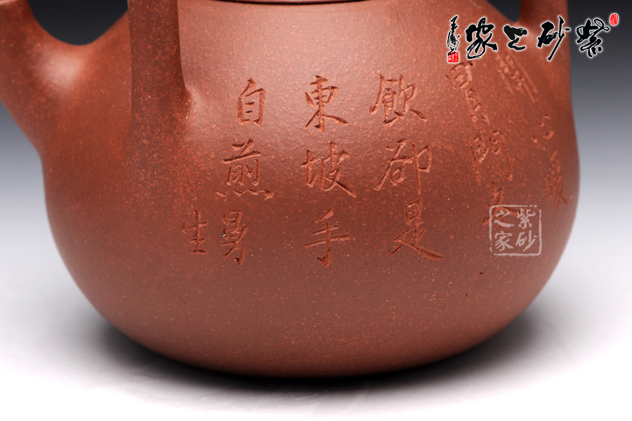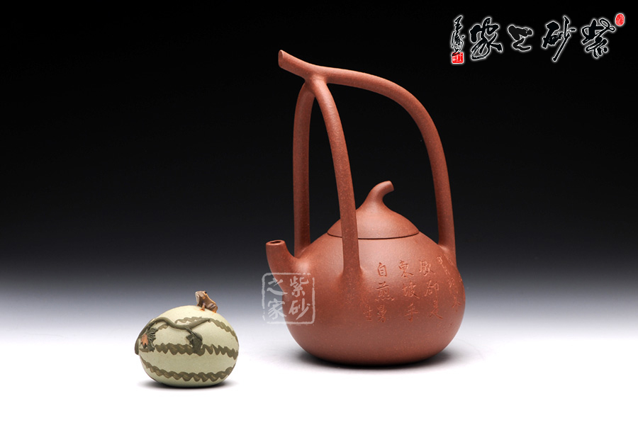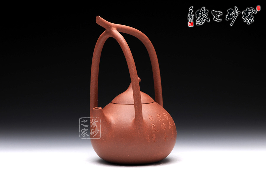 匏瓜壺是紫砂壺中的經(jīng)典款型之一。此匏瓜提梁壺,則是造型新穎獨特,此壺的提梁仿若是匏瓜的藤蔓,一匏瓜綴在藤蔓間,形象生動,可愛至極。 精選原礦降坡泥制成,紅潤古樸,古味十足。此壺采用刻繪裝飾工藝,壺正面刻繪的是“”,一手煮茶,一手品茗,思接千載,樂享人生。如此生活情趣和生活態(tài)度令人心曠神怡。此壺意蘊深遠,實用把玩和的贈送,皆是佳品。