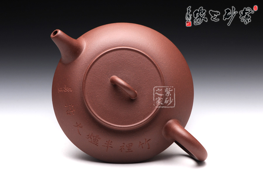 此壺是經(jīng)典的合盤壺,由原礦紫泥制成,色澤醇厚古樸,雅韻十足。合盤壺的壺身由上、下盤兩部分組成,上盤像個(gè)反扣著的碗,下盤像個(gè)小碟子。此器為扁圓形,狀似兩盤相合而成,故稱合盤壺。此壺腰線鼓出,向上、下呈 反弧收斂;頸、足皆矮,外廓曲線,秀美流暢;短流微曲,胥于上盤邊沿;圈把圓環(huán),置于上、下盤之間;壺身整體的各部比例恰到好處,壺腹上部刻銘:“竹里半爐火活”,字體蒼勁有力,古樸端莊,道出了對(duì)此壺贊美之情,如此好壺,值得擁有!