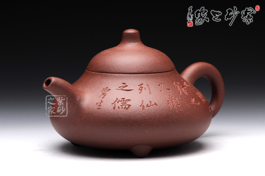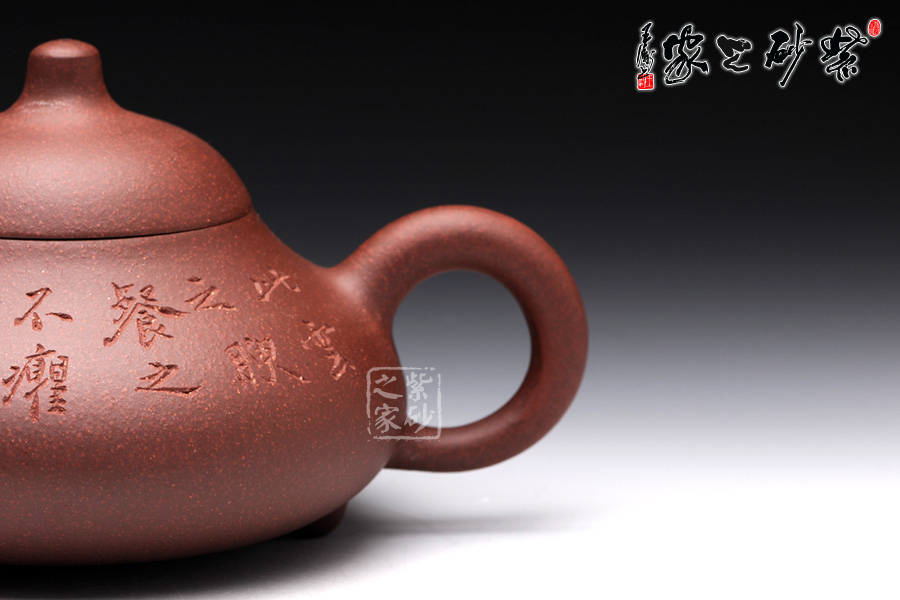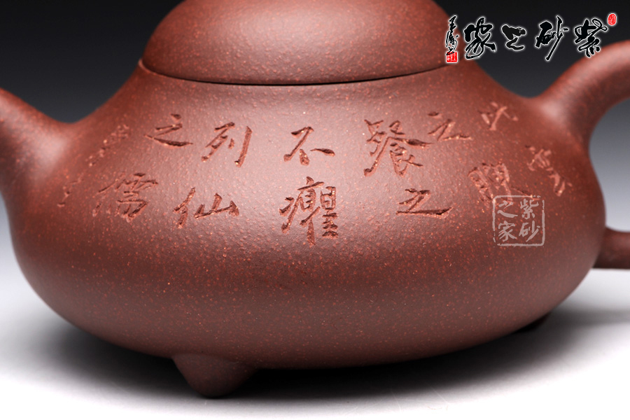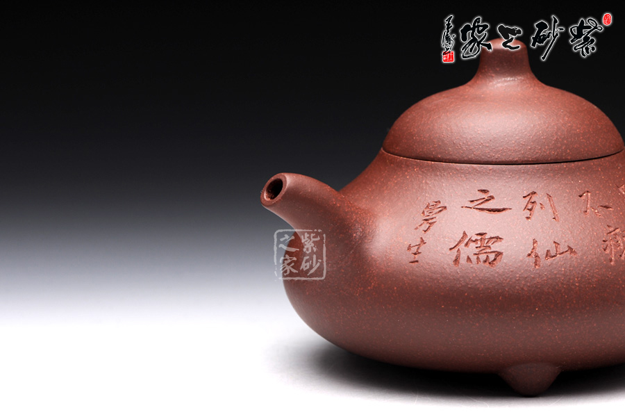 此壺名為橫云,精選原礦底槽清泥料制成,泥質(zhì)醇厚,色澤古穆。壺身和匏瓜相似,也和葫蘆也有幾分的相像。整個(gè)壺線條和順流暢,壺體清晰自然。此壺 采用刻繪裝飾工藝,于壺的正面刻繪了“此云不腴,餐之不癯,列仙之儒”這幾個(gè)大字,字體蒼勁古樸,雅致端莊,贊美了此壺出茶之香,造型之不俗。為此,集實(shí)用性與把玩性 于一體的該壺,是不可多得的珍品。
