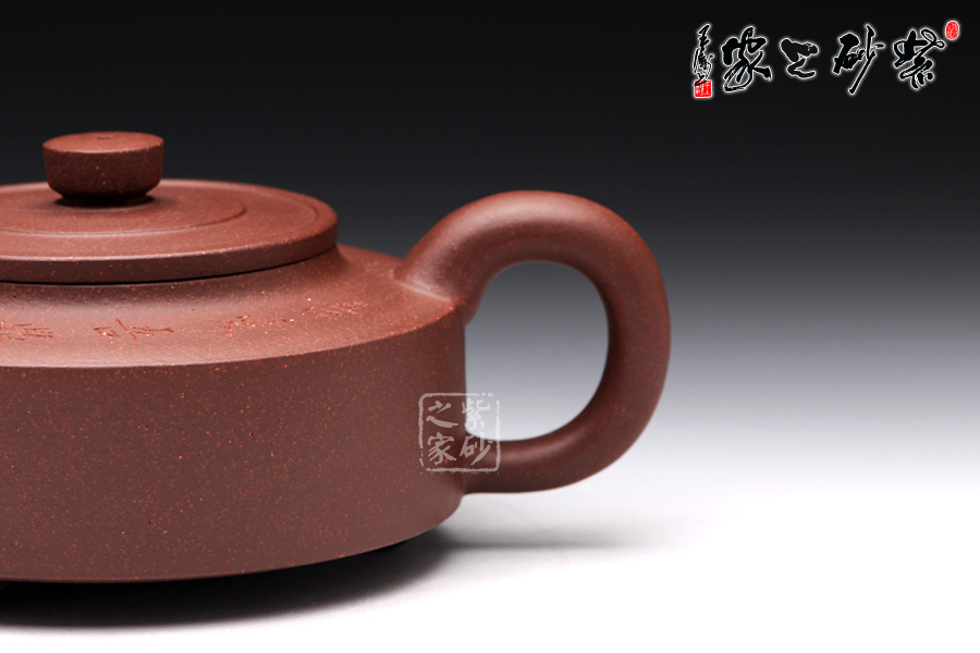 李湘云老師此壺選原礦底槽清泥料制成,泥質(zhì)醇厚,色澤古穆。此壺名為周盤,周盤為曼生經(jīng)典壺型之一,其經(jīng)典在于所蘊(yùn)含的意志——“表面圓通卻堅(jiān)持己見,曲直合一為人之道也”,對(duì)于常以古人之道用以自勉抑或修身養(yǎng)性之人來(lái)說(shuō),此壺所蘊(yùn)含的意境已經(jīng)遠(yuǎn)遠(yuǎn)超過(guò)壺本身的功用,正所謂經(jīng)典自有自經(jīng)典之處!該壺平蓋壓口,壺鈕短柱與壺身一致。直流嘴修長(zhǎng)而出,圈把與壺身幾乎等高,把底與壺嘴相應(yīng)和。整款壺把握精準(zhǔn)到位,線面分明,做工精良。壺口一圈處刻繪了“”。字體古樸端正,具有文化氣息。
