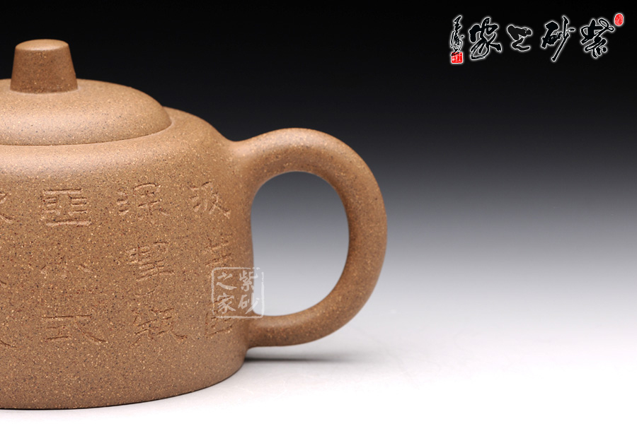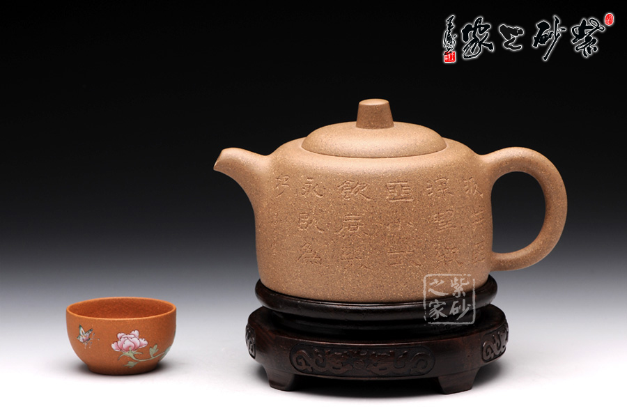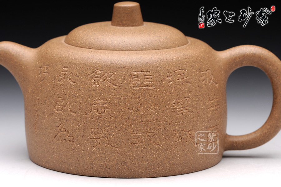 精選原礦段泥制成的井欄壺,清雅脫俗,簡(jiǎn)潔質(zhì)樸。該壺體周身皆由弧線(xiàn)構(gòu)成,線(xiàn)條圓融有力,簡(jiǎn)潔明快,壺身沉穩(wěn)而不凝滯,別有一番風(fēng)味;斜斜向上的管狀流和中心略為下沉的環(huán)形把,前后呼應(yīng),壺嘴略微短小,齊整干凈,出水暢快,斷水不滴。壺身正面篆刻的是“汲井非深,掣瓶非小,是飲庶幾,永以為好”,此句可謂是道出了井欄壺的真諦:壺與水一家,此壺出香茶;壺與井一體,壺形似井欄,汲水深淺的哲思更耐尋味,發(fā)人深思。此壺,值得把玩和珍藏 。