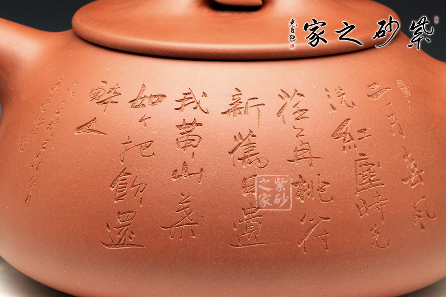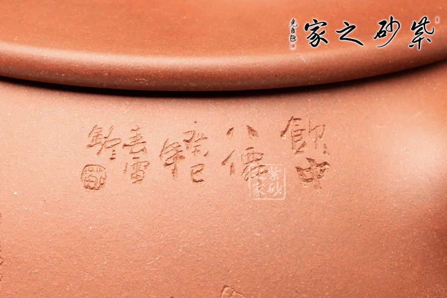 B面: 裝飾: 詩詞 裝飾者:陶刻藝人 裝飾內(nèi)容: “二月春風(fēng)洗紅塵,時光荏苒桃符新。舊日遺我黃山茶,如今把飲還醉人”