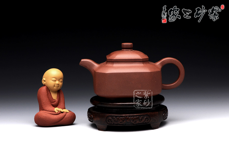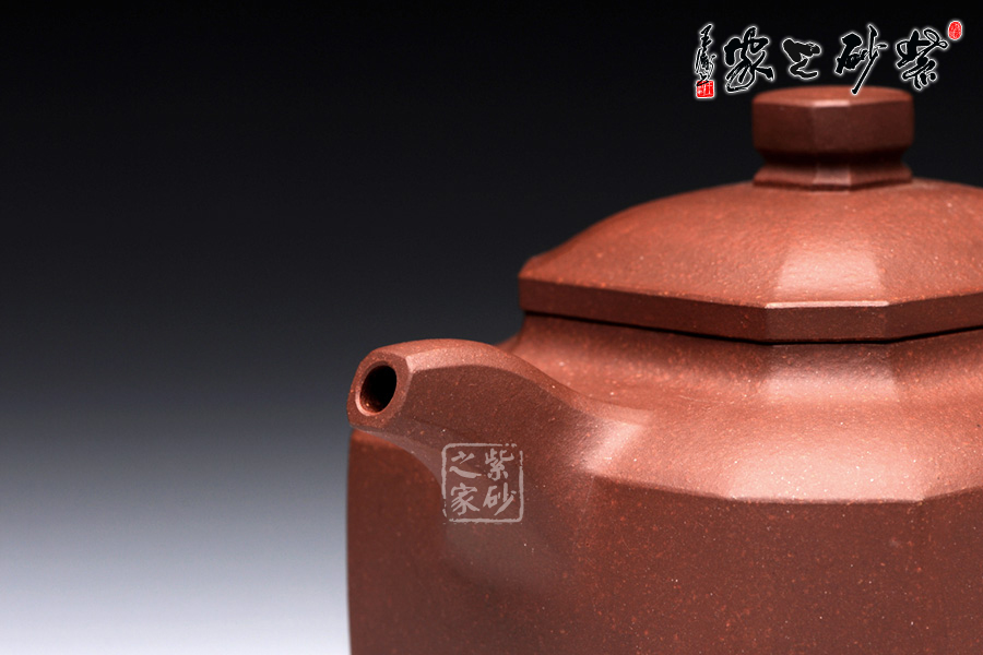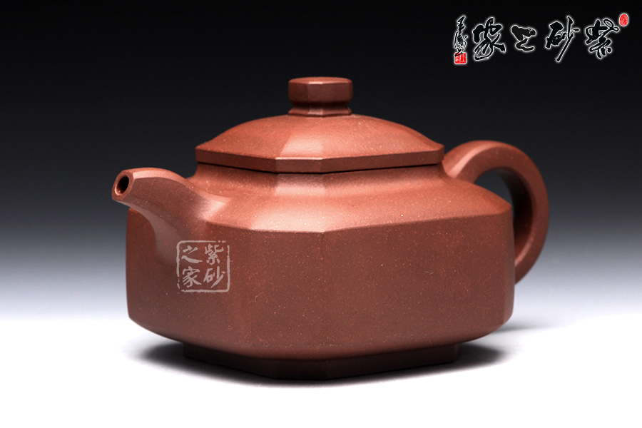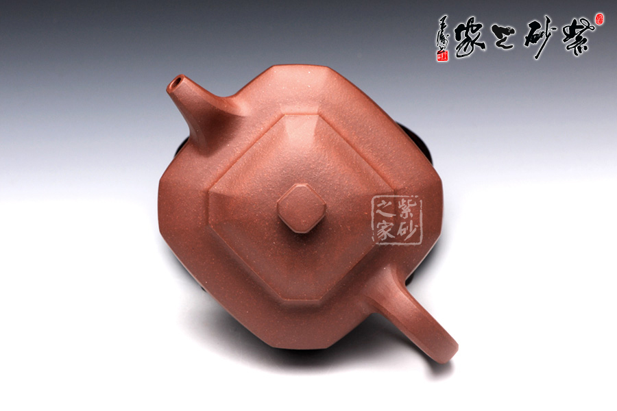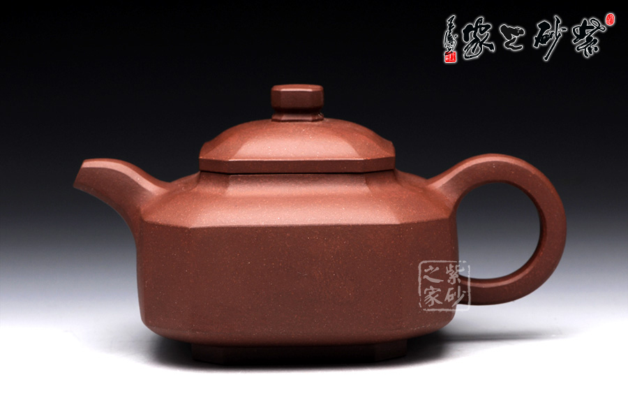 此壺名為福臨八方,顧名思義,是五福臨門,八方吉祥之意。此壺的吉祥和祝福之意,可見一斑。該壺造型奇特,壺身八方,對稱工整,足見制壺者工藝之精巧。壺鈕也呈八方形,精巧別致。一彎流壺嘴上翹微彎,棱角清晰,線條剛勁有力,和壺身棱角線條和諧一致。端把大方端莊,呈大圓耳形,端握有力稱手,更與壺身相應(yīng)成趣。此壺,值得推薦。