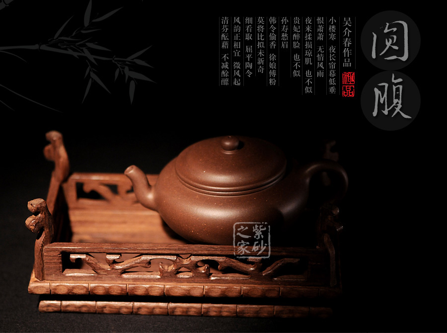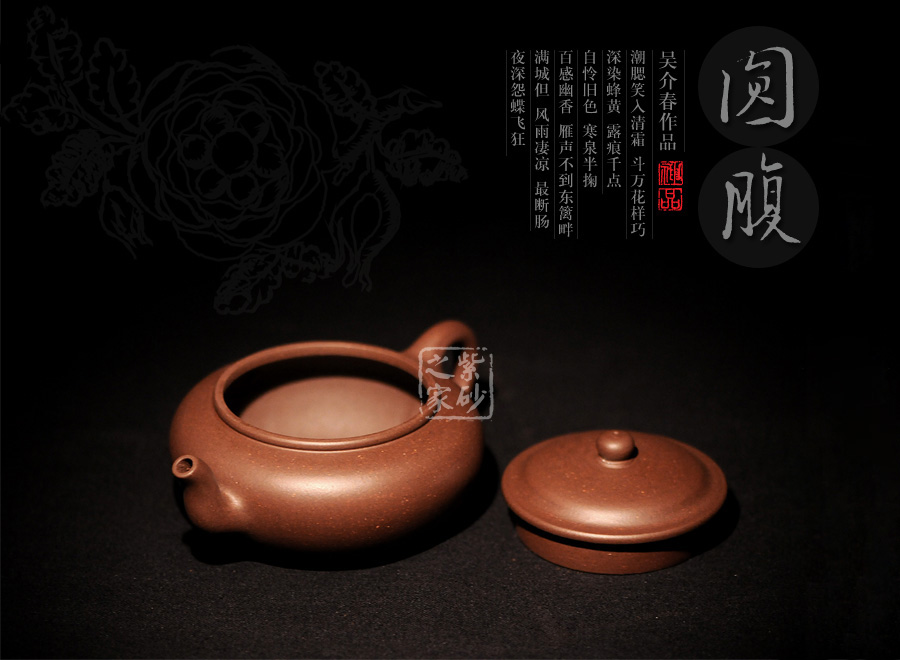 此壺出自吳介之手,精選原礦拼紫泥制成,細(xì)膩柔和,色澤厚重此壺精選原礦紫泥拼紅泥,整體色澤深沉醇厚,古樸味十足。吳介春國家級高級工藝美術(shù)師,師從徐秀棠大師和高級工藝美術(shù)師尹祥明。該壺壺身偏扁,壺鈕如珠,圓潤舒適,壓蓋式,子母線嚴(yán)絲合縫,緊密貼合,氣密性良好。三彎流壺嘴,俊俏上揚(yáng),出水干脆利落,圓耳形端把,骨肉亭勻,端握舒適稱手。該壺值得推薦。