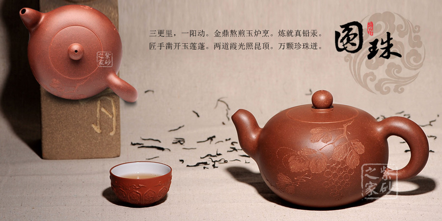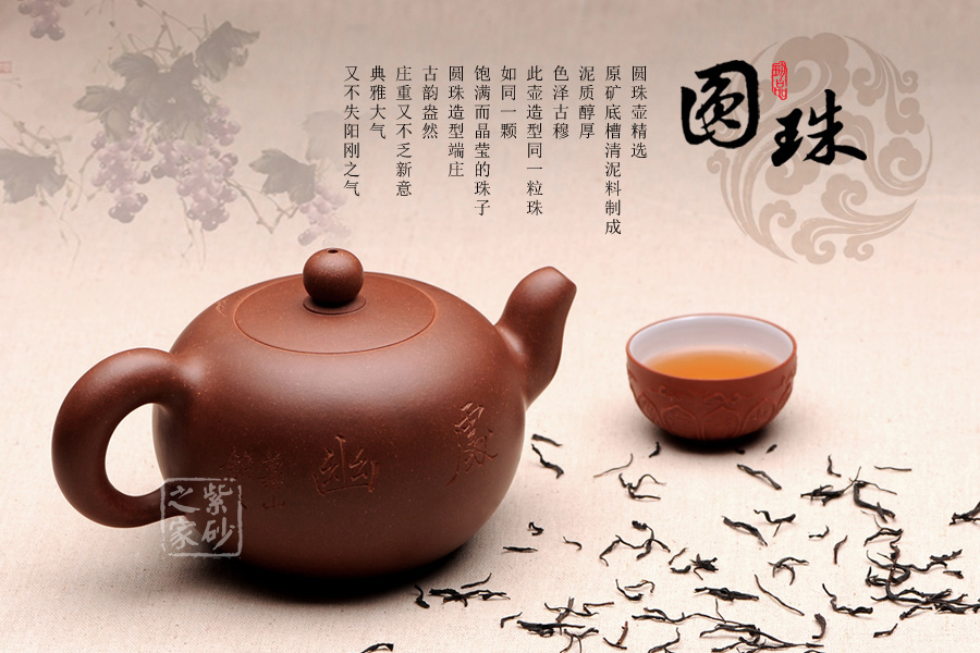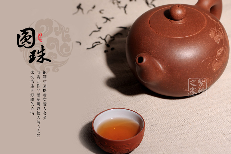 圓珠壺精選 原礦底 槽清泥料制成, 泥質(zhì)醇厚, 色澤古穆 。此壺造型同一粒珠 ,如同一顆 飽滿而晶瑩的珠子, 圓珠造型端莊 ,古韻盎然, 莊重又不乏新意, 典雅大氣 又不失陽剛之氣。