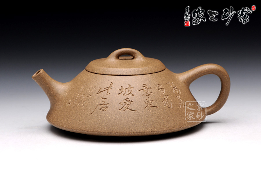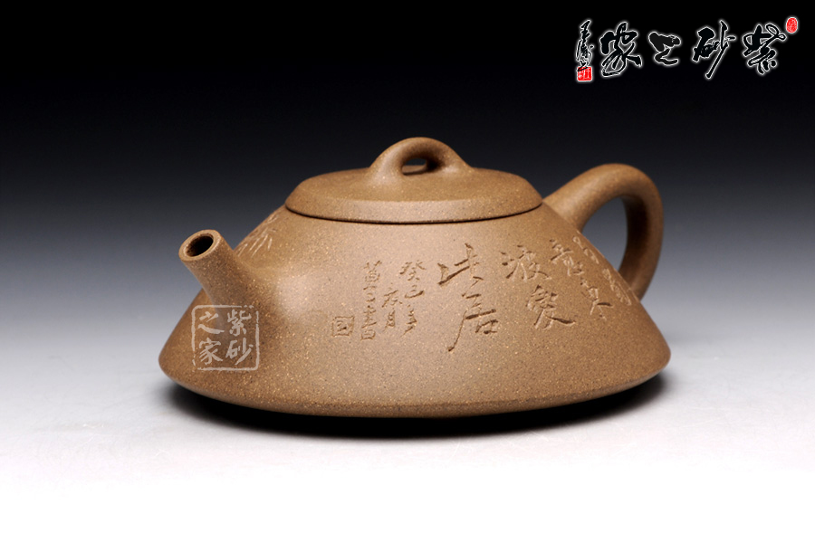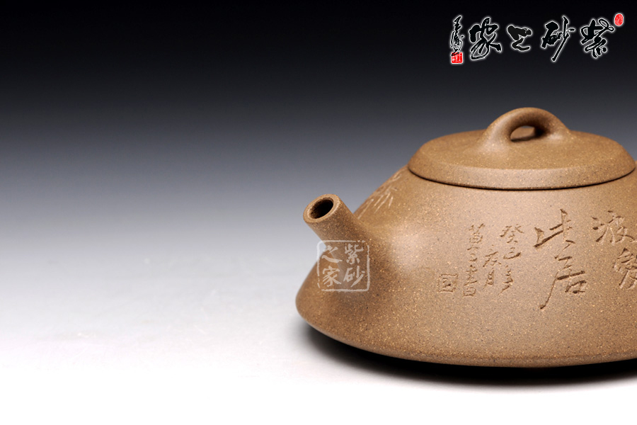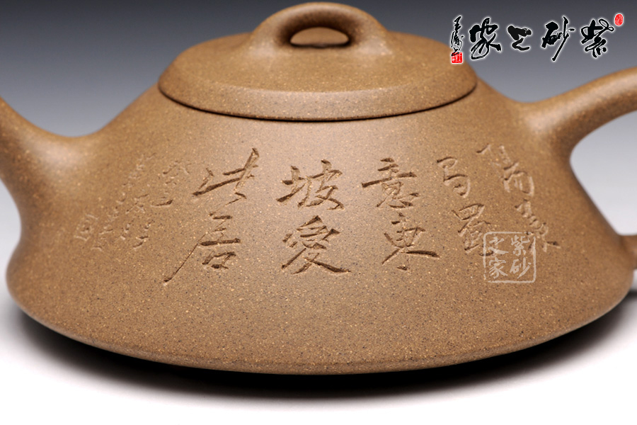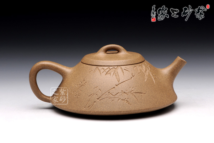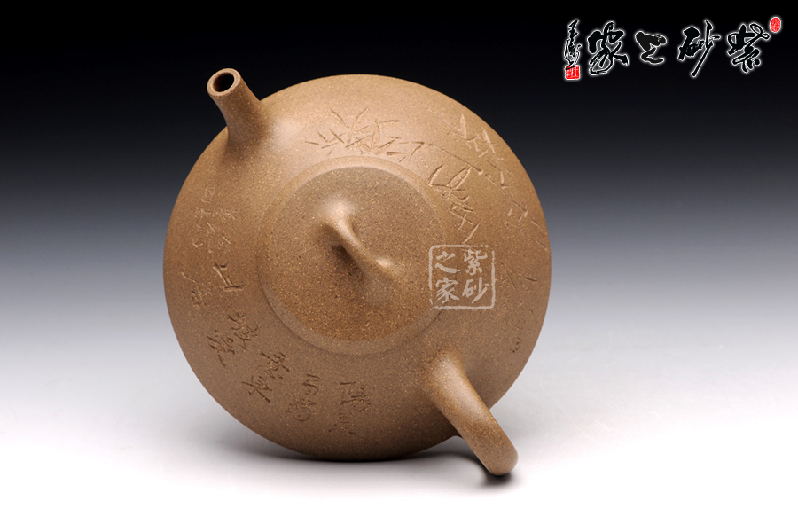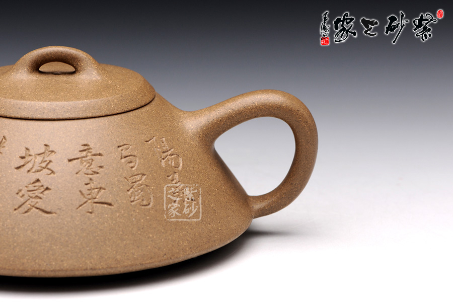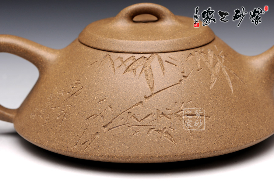 此壺精選原礦段泥制成,色調(diào)清逸質(zhì)樸,泥質(zhì)溫婉平和。該壺造型簡練, 古樸大方,端莊穩(wěn)重,剛中有勁,敦實調(diào)和。壺的體形是以兩條拋物線結(jié)合而成,一條是從口到底的轉(zhuǎn)角處,一條是底中心至底的轉(zhuǎn)角處。此壺采用刻繪裝飾工藝,正面刻繪了“陽羨馬蜀意,東坡愛此居 ”,一種獨特的生活情趣漾于壺間。壺反面刻繪了綠竹一叢,寄寓了該壺的高貴品格,傳遞了制壺者的高雅情操。此壺,集實用和把玩于一體,是收藏的佳品。