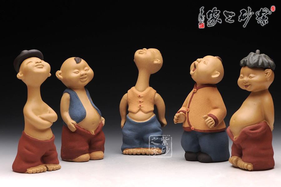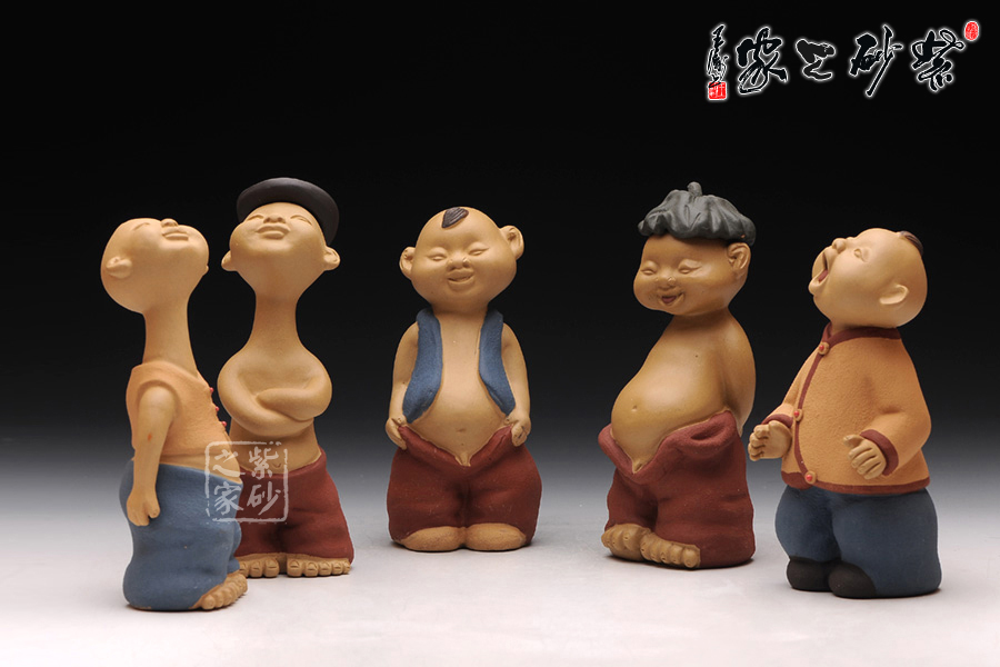 由紫砂泥制作而成的五兄弟,可謂是親切可人。五個(gè)小人從穿著打扮到姿勢(shì)造型,皆不相同,且神情各異,給人五種不同的感受,令人嘆為觀止,愛不釋手。此擺件,不論是贈(zèng)送親友還是自我收藏皆是佳品。