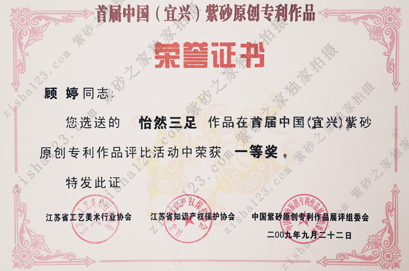 ▼ 2009年首屆中國(guó)宜興紫砂原創(chuàng)專利作品金獎(jiǎng)!
