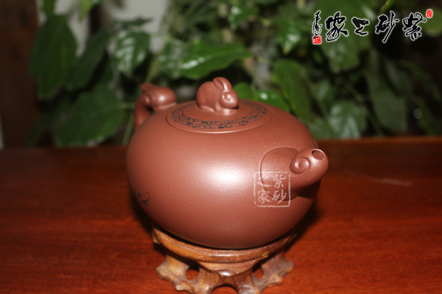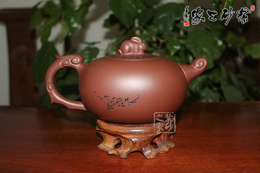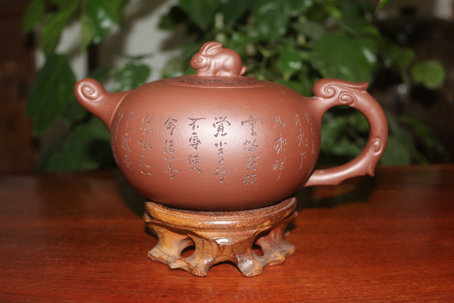 月兔壺選用純正紫砂泥料制作,造型設(shè)計(jì)以月兔理念,并于壺身篆刻順口溜“月兔下凡乘祥云,泡茶頓覺(jué)塵已盡,不辱使命結(jié)善緣,水天一色渡送神”,嘴把設(shè)計(jì)與整體呼應(yīng),整款作品如同充滿靈氣般優(yōu)雅而有神話色彩!