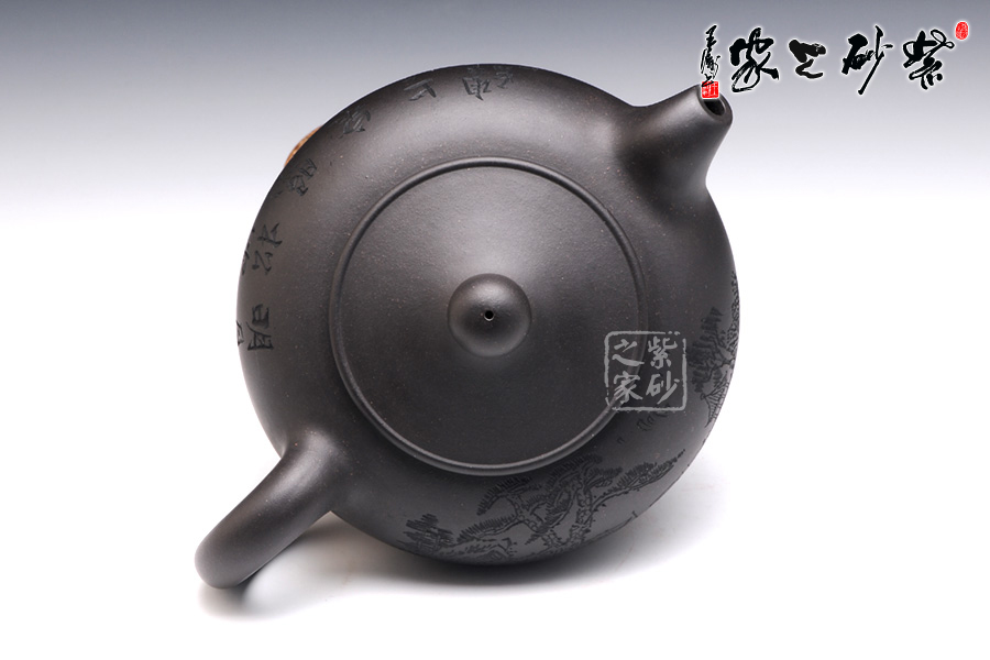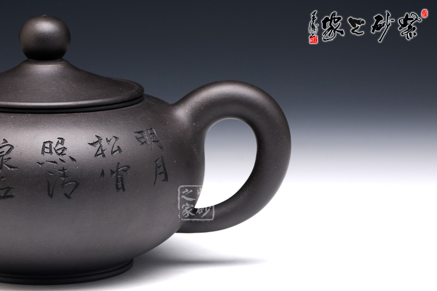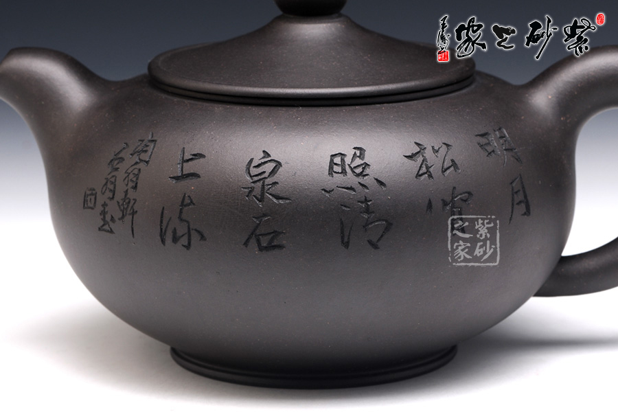 清泉壺一改繁瑣,崇尚簡樸,作品造型大氣厚重,彰顯深厚古樸的美感,壺身線條流暢自然,宛若天成,其氣勢如虹,如高山流水,更讓人有痛快淋漓之感,作品即凸顯了線條的力量美,又展示了紫砂的簡練美,壺身裝飾由沈漢生(石羽)操刀篆刻!
