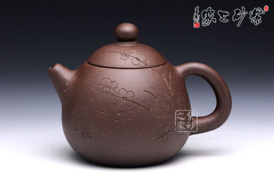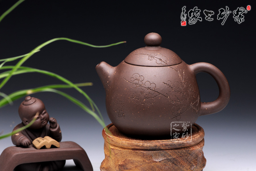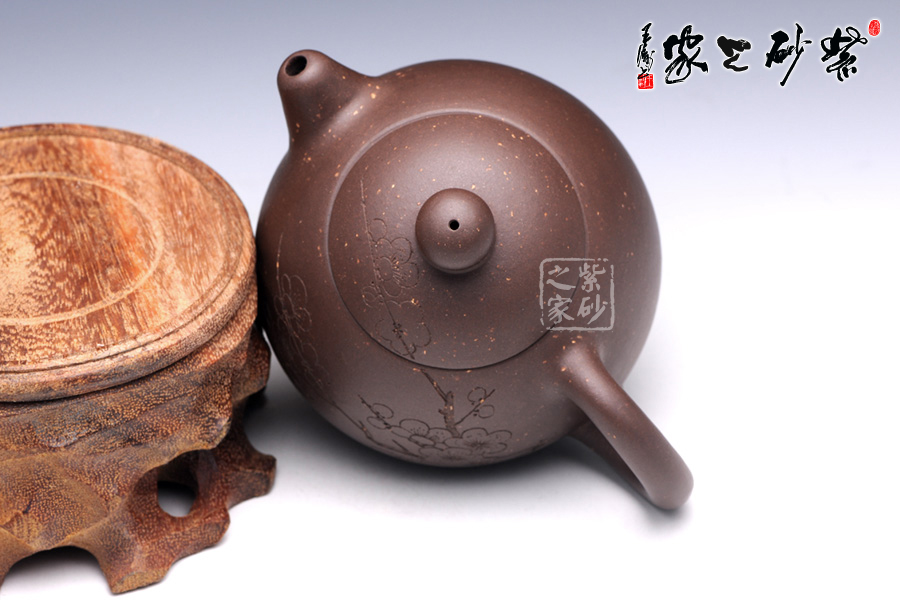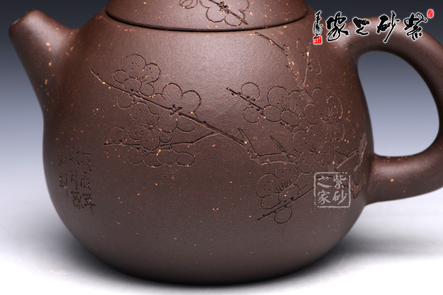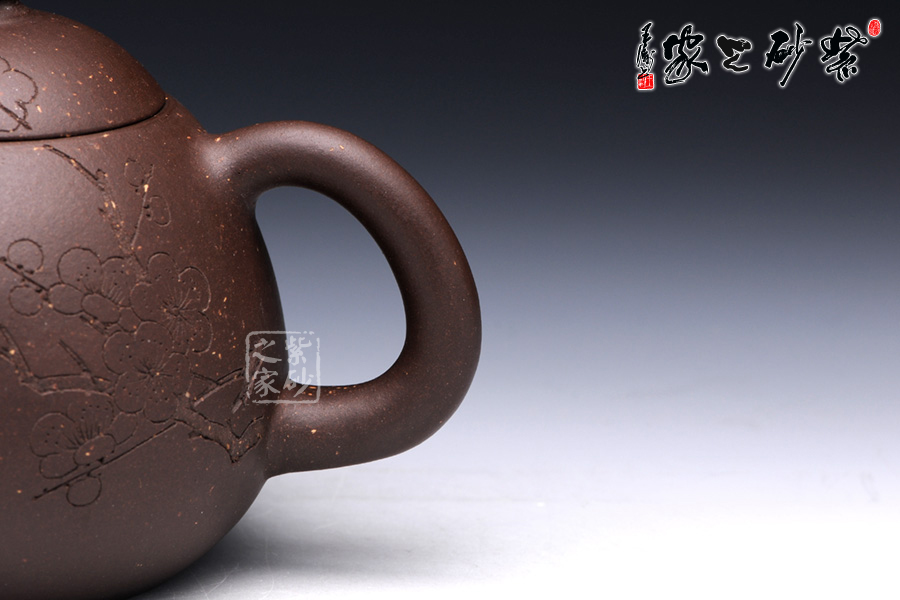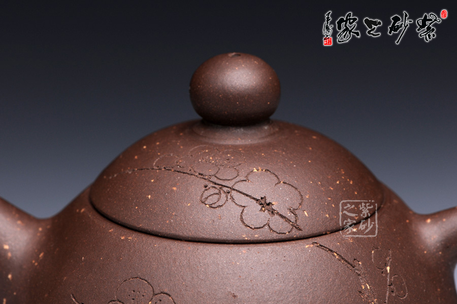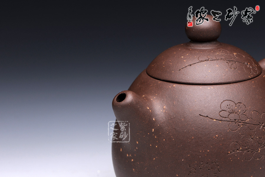 通體裝飾: 裝飾: 梅 裝飾者:陳巖 裝飾內(nèi)容: 壺身通體篆刻梅,體現(xiàn)了淡泊清雅的品質(zhì)