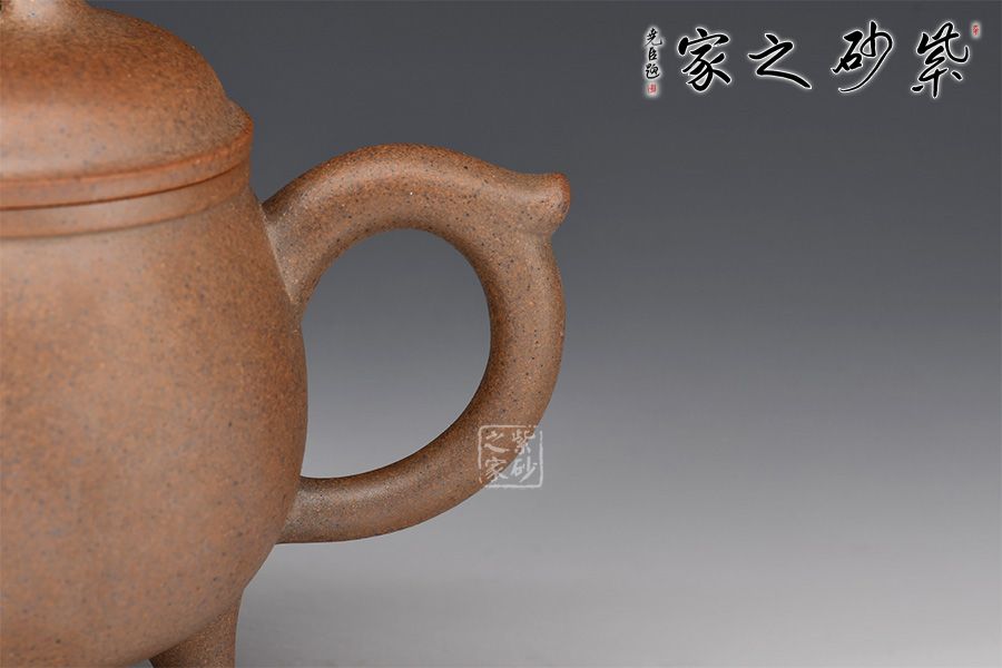 鼎乃象征國(guó)家和權(quán)力,是古代非常重要的器物,在紫砂作品中也不斷被運(yùn)用,此款三腳乳鼎選用老料制作,無(wú)處不彰顯其古雅風(fēng)韻,又透出老味氣息,很是耐人尋味。各部位優(yōu)美的線條與壺身呼應(yīng)成趣,且各部位的銜接恰到好處,不落任何痕跡,似與整器融為一體,三高足設(shè)計(jì)突出主題,象征穩(wěn)重與踏實(shí),乃是沉穩(wěn)之勢(shì)。