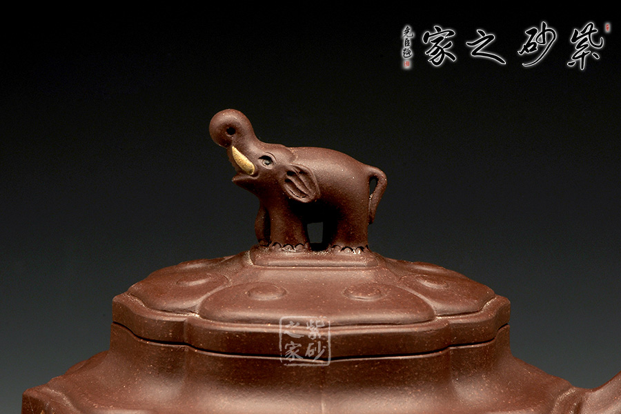 壺蓋同壺身造型一致,以花朵取形,蓋上以如意云紋作裝飾,更顯典雅動(dòng)人。而象形壺鈕的設(shè)計(jì),無疑是該壺的點(diǎn)睛之筆,不僅提高了整壺的姿態(tài)與氣勢,而且與該壺主題相契,別有韻味。