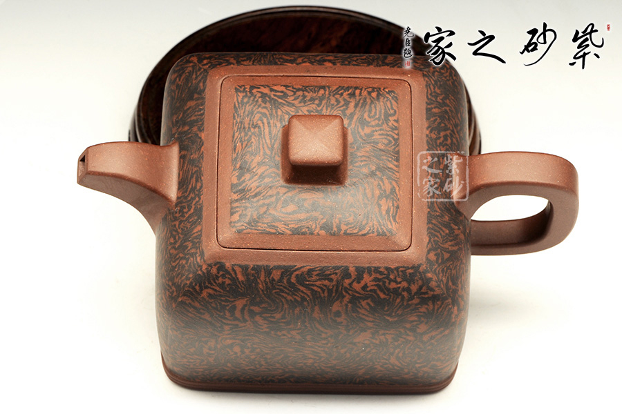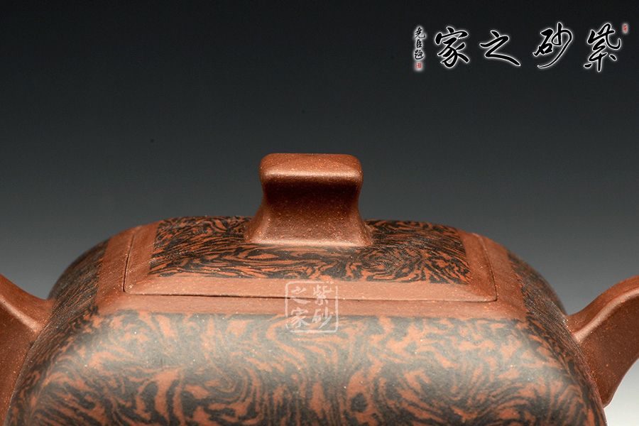 孔小明亦是孔家壺的代表人物之一,他制作的此款作品最大的特色在于絞泥的運(yùn)用,圖案自然流暢,壺身飽滿寬闊,線條舒暢柔和,給人大度之感;壺底之下三圈線條作底,提升立體效果。嵌蓋設(shè)計(jì)使得作品渾如一體,此漢方表現(xiàn)出了得體大度的君子氣度!