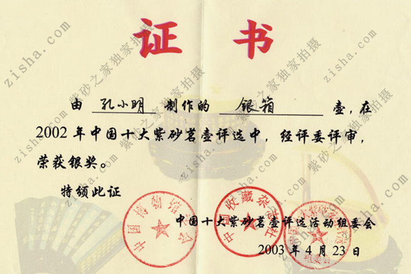 2002年中國十大紫砂茗壺評選中,銀箱壺獲銀獎(jiǎng)。