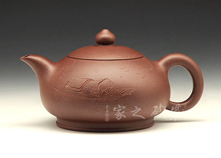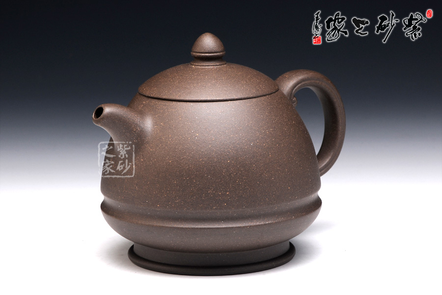 玉笠壺乃圓器中的經(jīng)典壺型,玉笠壺壺身圓潤(rùn)有型,壺嘴曲環(huán)有度,仿佛漁翁魚(yú)竿,垂釣江面;壺把舒適穩(wěn)定;壺蓋疏密有致;壺鈕細(xì)膩光滑,壺嘴、壺鈕與壺把三點(diǎn)一線,比例協(xié)調(diào)。壺身無(wú)任何裝飾,素雅的狀態(tài)耐人尋味,整器勻稱柔和,風(fēng)格清和恬淡,寧?kù)o祥和,給人以清靜氣爽的感覺(jué),統(tǒng)觀此壺,形如斗笠,蓑衣漁翁獨(dú)釣寒江,令人回味。