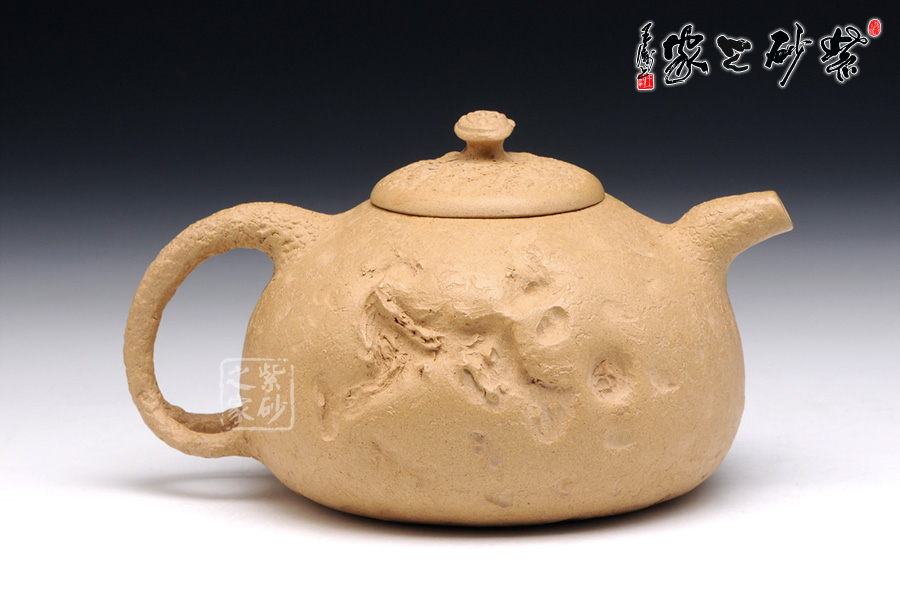 泥性:感甜嫩綿密,質(zhì)堅(jiān)而溫潤(rùn),呈近田黃色調(diào),為江蘇宜興趙莊山系朱泥礦~黃石黃之共生礦,經(jīng)挑揀練製而成,因含鐵量只達(dá)6%左右,致陶之后呈“金田黃色”。