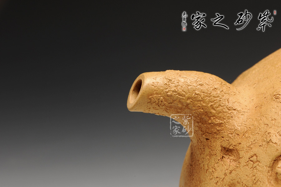 泥性:感甜嫩綿密,質(zhì)堅而溫潤,呈近田黃色調(diào),為江蘇宜興趙莊山系朱泥礦~黃石黃之共生礦,經(jīng)挑揀練製而成,因含鐵量只達6%左右,致陶之后呈“金田黃色”。