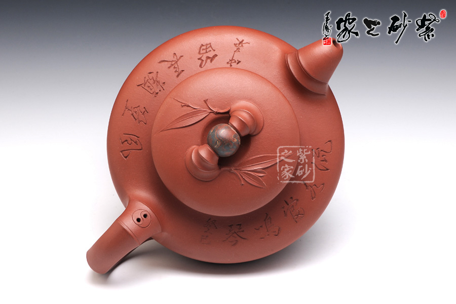 時(shí)來運(yùn)轉(zhuǎn)造型獨(dú)特、寓意深刻,做工精細(xì),是手工壺中之精品。作品精選清水泥制作,清逸亮澤,泥質(zhì)細(xì)膩棉柔;壺身呈竹節(jié)狀,制作精細(xì)逼真,壺鈕上的圓珠用絞泥工藝制成,轉(zhuǎn)動(dòng)靈活,與主題“時(shí)來運(yùn)轉(zhuǎn)”十分契合;幾片竹葉自壺鈕邊邊胥出,清雅淡泊,與世無爭(zhēng);竹節(jié)耳形壺把,顯示了竹子的堅(jiān)韌不拔,端握舒適,壺嘴與之呼應(yīng),有讓人仿佛如沐春風(fēng)般的享受。壺肩之外咸仲英老師篆刻“風(fēng)篁類長(zhǎng)笛; 流水當(dāng)鳴琴”。