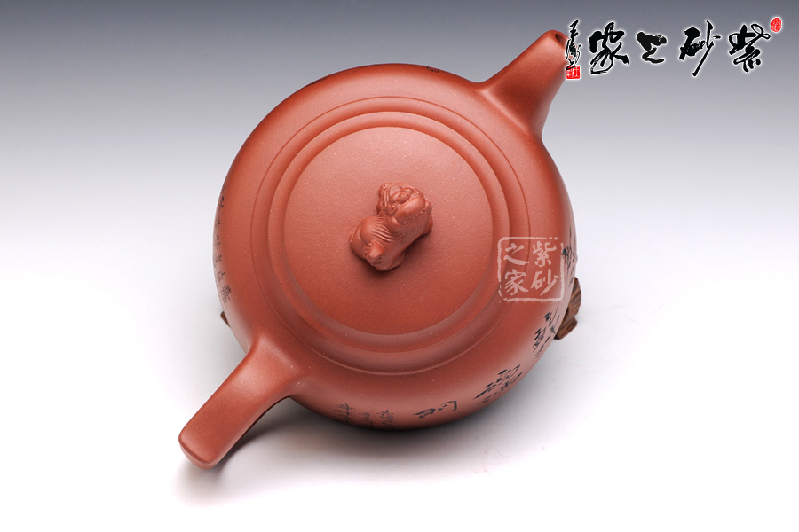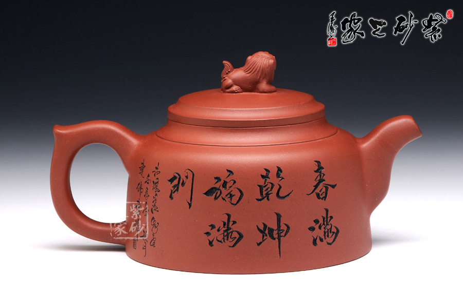 春滿乾坤穩(wěn)實敦厚,形制古樸,端莊穩(wěn)重,上窄下寬的器型重心下沉更沉穩(wěn),壺嘴彎流與飛檐環(huán)把呼應(yīng),其曲線流暢卻又顯得動態(tài)十足,壺蓋之上圈紋飾之立體感強,一只瑞獸為鈕,制作精細,形態(tài)逼真,整器猶為穩(wěn)重而渾厚,但又有些許的靈動。