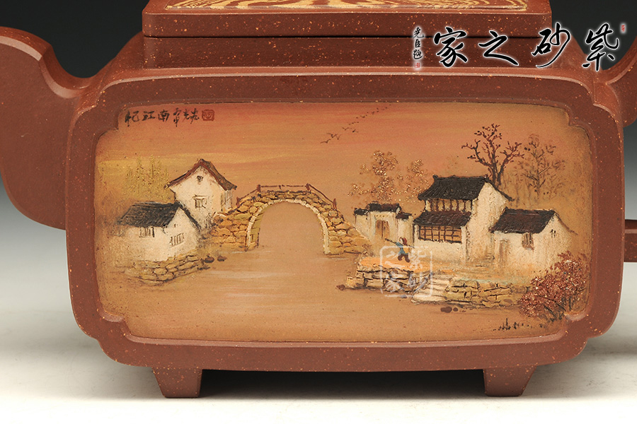 通體裝飾: 裝飾: 泥繪 裝飾者:何光宏 裝飾內(nèi)容: 江南水鄉(xiāng)