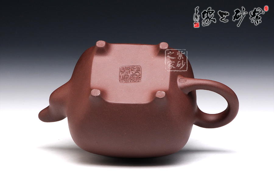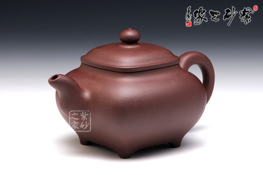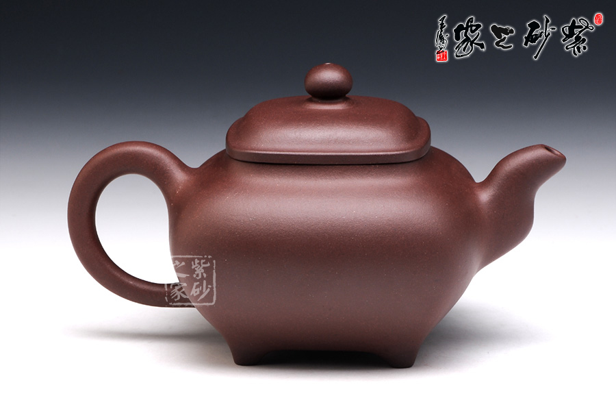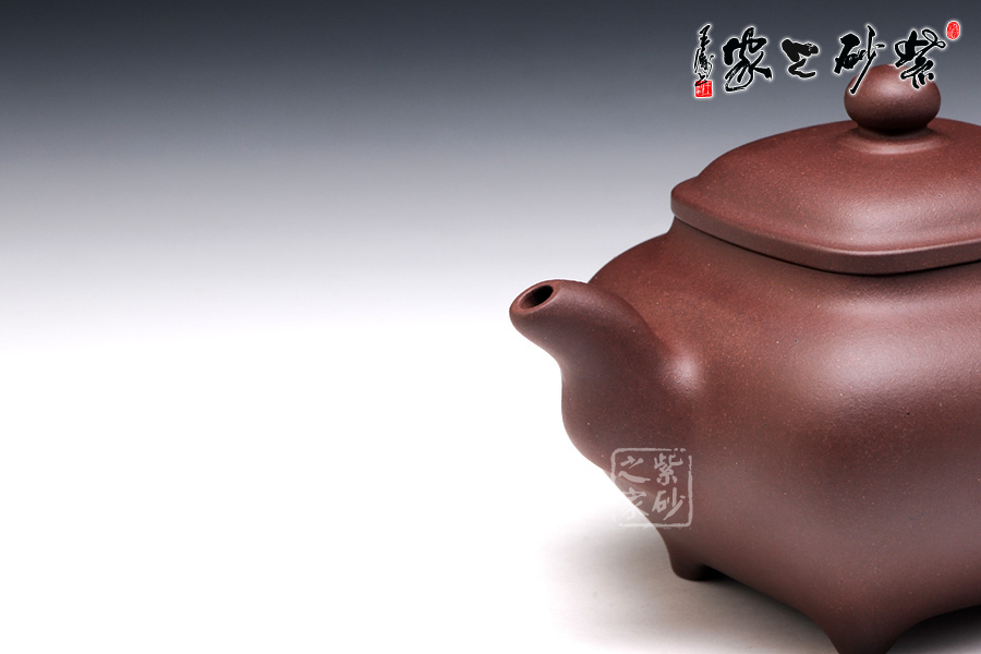 傳爐是經(jīng)典的方器造型,其制造型取材于青銅器,器身形狀以方器為基本型,但方中寓圓,比一般方器多了一份圓潤(rùn)之美。壺嘴的造型難度亦高,方中帶圓,圓里寓方。三彎流式曲折有致,出水流暢;壺蓋制作精良,壺蓋能四面通轉(zhuǎn)無(wú)礙,且面面俱到。此壺敦厚樸實(shí),風(fēng)格雅致,隱隱有古風(fēng)韻。