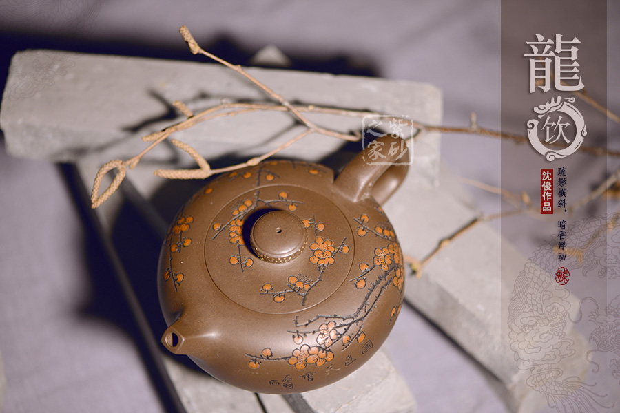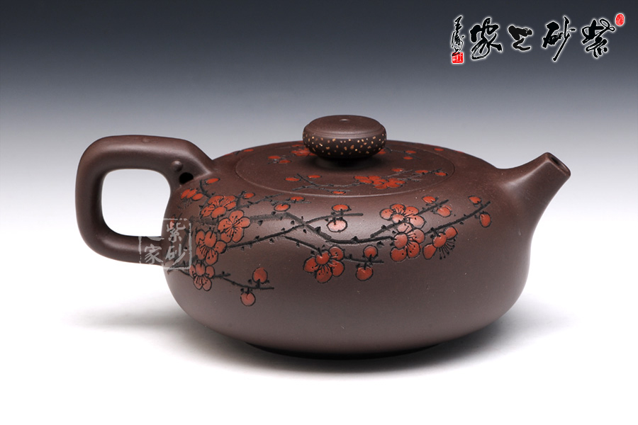 此壺造型古樸,刻繪梅花美妙生動(dòng),是玩壺品茶的上選。