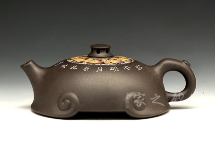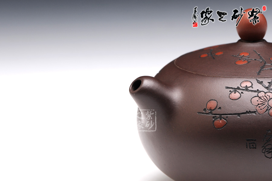 《祥云壺》、《迎春壺》、《勝算壺》看似平實,蘊含生活情趣,《茗香石瓢壺》傳統(tǒng)與現(xiàn)代結合的經典之作,榮獲2002年上海工藝美術大師精品展銀獎。《一品紅》、《爆》、《花婉》、《覓》、《高山流水》、《碩果》等雙色嵌泥工藝為特色的系列作品,以強烈的視覺感受、細膩的線條襯托,和諧對稱的造型比例,將紫砂陶藝與現(xiàn)代生活有機的結合演示得淋漓盡致,在壺藝收藏界引起不小的震動。其聲望直追其父,已有青出于藍而勝于藍之勢,成為宜興紫砂新秀中的佼佼者。