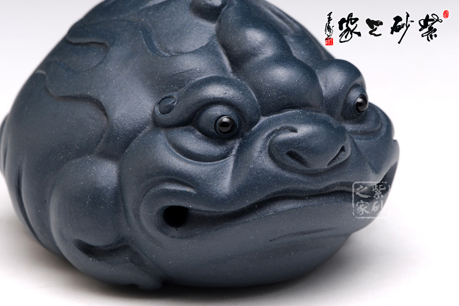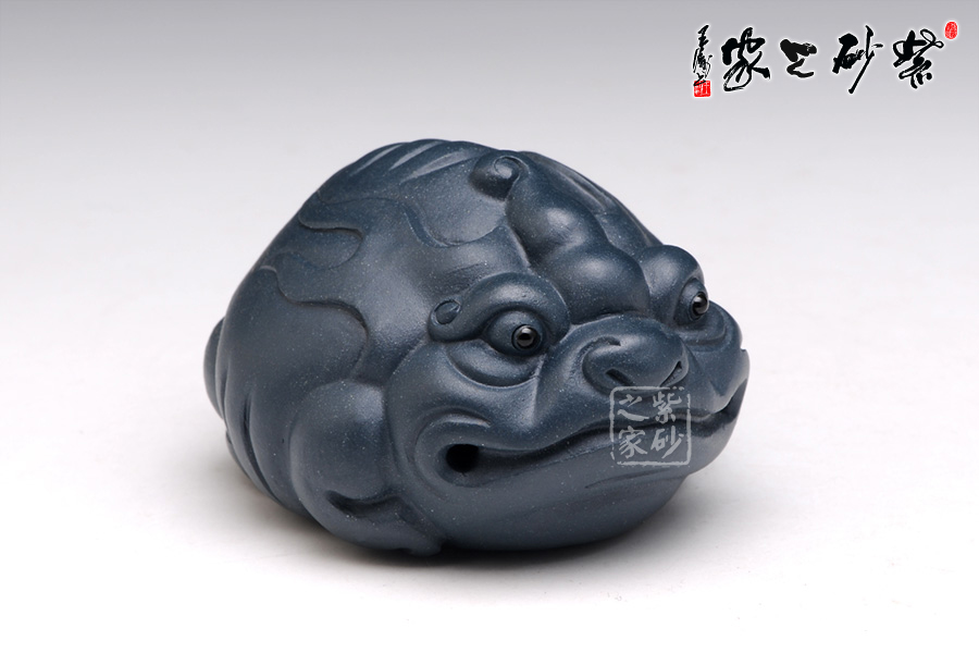作者:金蟾貔貅 職稱: 泥料:原礦墨綠泥 尺寸:7*5*4cm