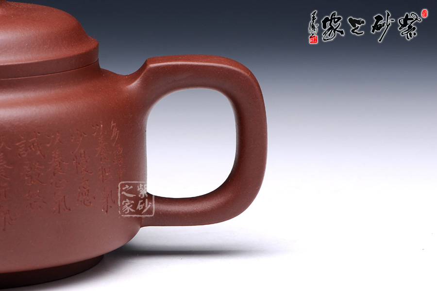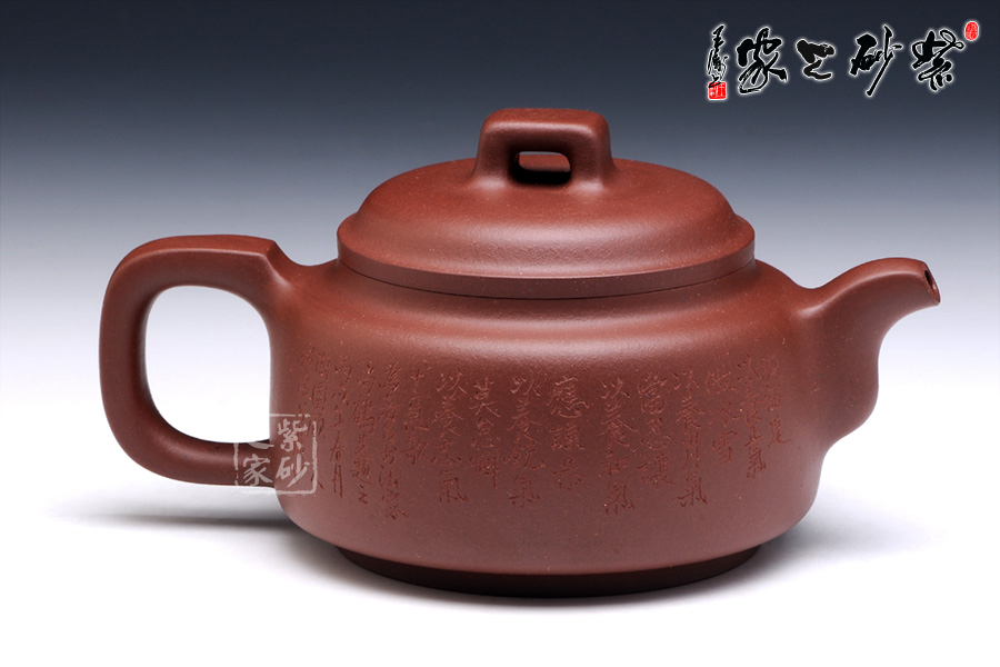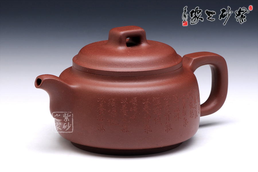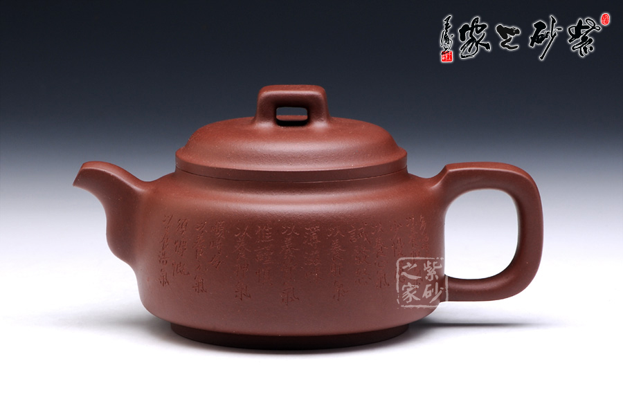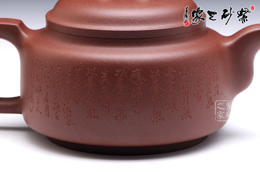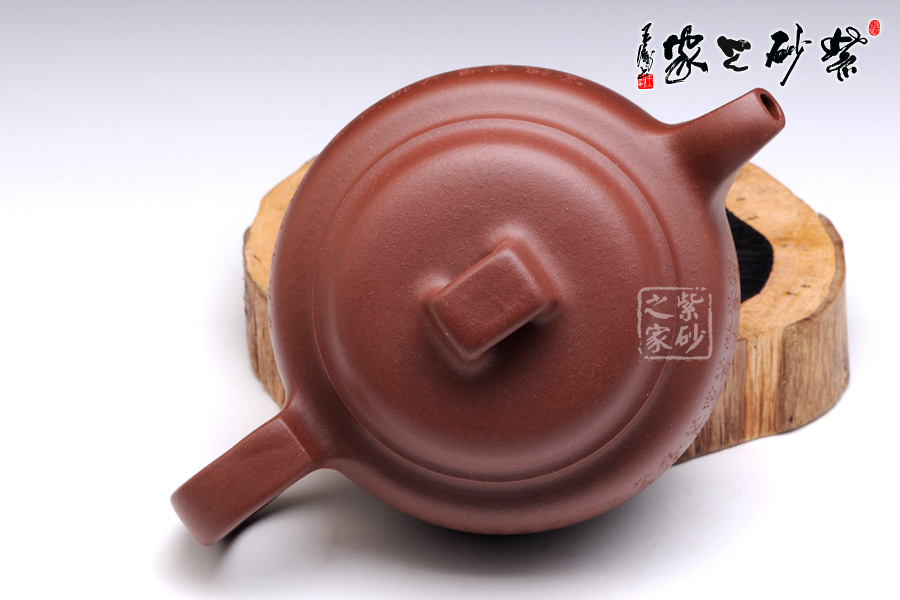 壺身圓滑簡練,扁圓筒型規(guī)則平整,圈足設(shè)計(jì),托起高雅氣質(zhì)。壓蓋設(shè)計(jì),壺蓋微鼓,橋型鈕簡單而靈動。壺把和壺嘴均典雅古樸,方型制作,有金石的味道,更有銅鼎的古韻。