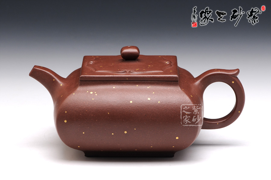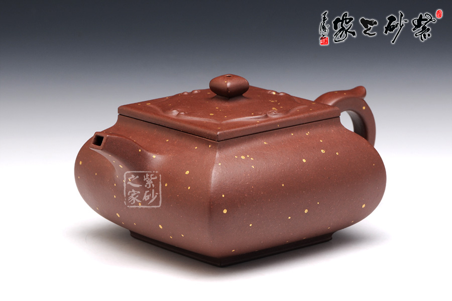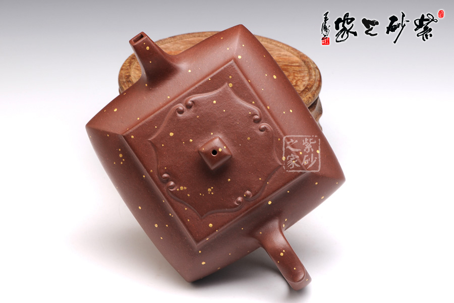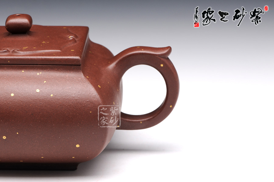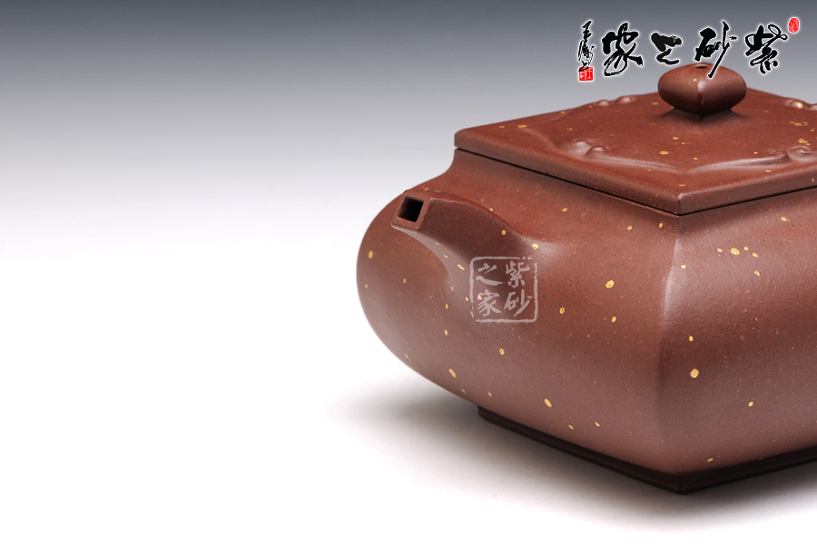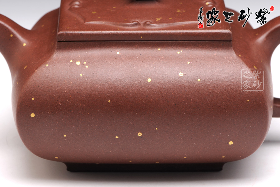 茗壺在傳統(tǒng)中追求創(chuàng)新,在新穎中不失古樸雅致,四方造型卻沒有棱角分明,多了份柔美之感,壺身四方組合而成,線條蒼勁堅韌極具張力,體現(xiàn)了作者的不凡功力,壺嘴、壺把與壺鈕的設(shè)計三點一線,與整體協(xié)調(diào)統(tǒng)一,充分展示了紫砂的整體美。壺身上的點彩裝飾自然又寫意,讓人體會出無窮的藝術(shù)美感。作品雖無華麗的裝飾,卻足夠人賞心悅目,游目騁懷。