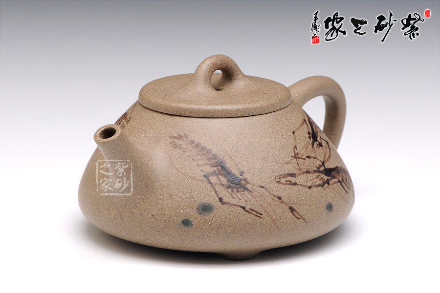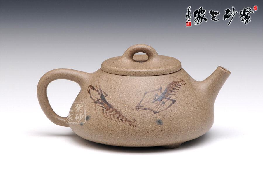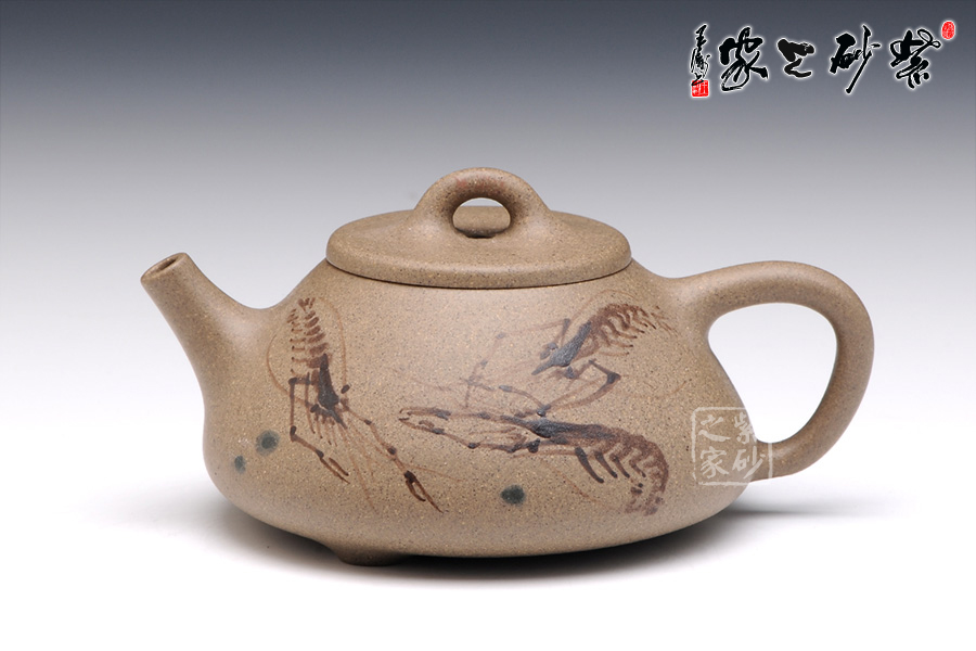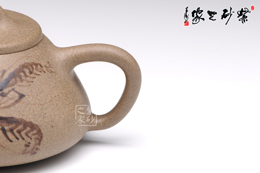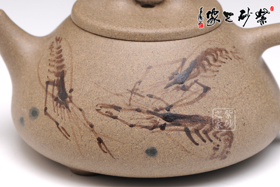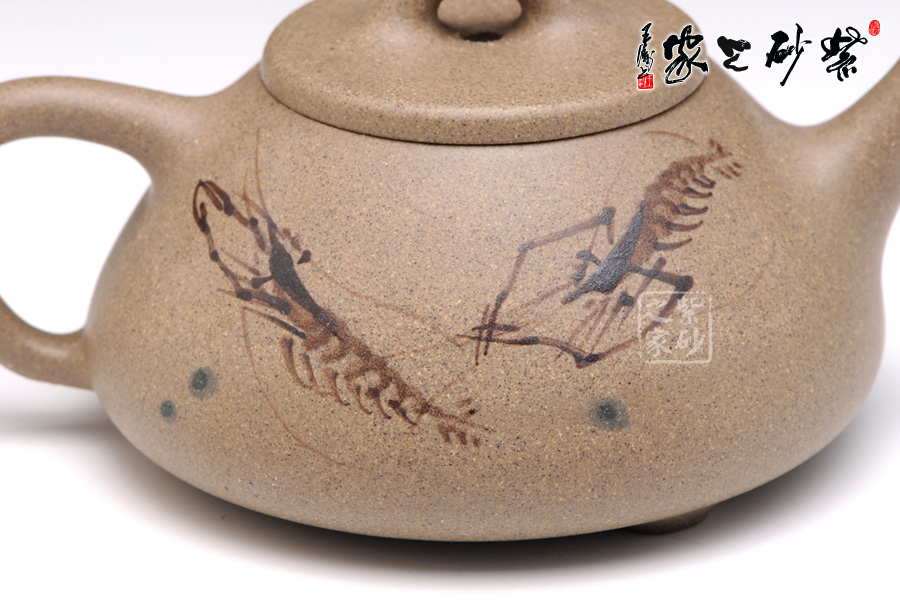 通體裝飾: 裝飾: 泥繪 裝飾者:陶刻藝人 裝飾內(nèi)容: 泥繪小蝦,閑趣惹人