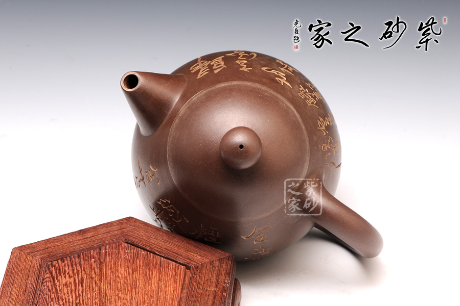 壺身裝飾由江蘇省工藝美術(shù)大師、研究員級高工范建軍篆刻,刻字鏗鏘有力,如鐵畫銀勾般展現(xiàn)了剛勁的氣勢。