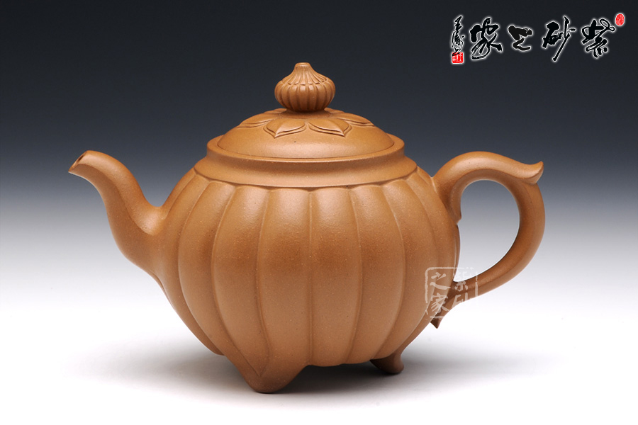 壺身為一個(gè)飽滿的圓球,碩大豐盈,非常亮眼。三鼎足拱衛(wèi),托起此壺的不凡氣韻。筋紋裝飾,橫貫壺身上下,線條清晰分明,對仗工整大方。壺蓋之上,以牡丹花紋理環(huán)繞壺鈕,正是花開富貴,國色天香。原礦段泥色澤鮮亮生動(dòng),用于制此壺,更加高貴動(dòng)人。