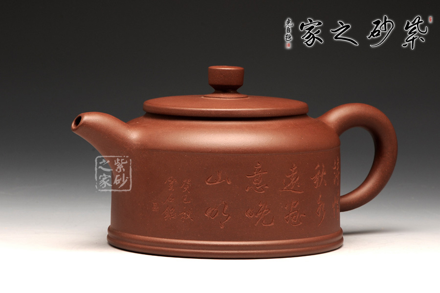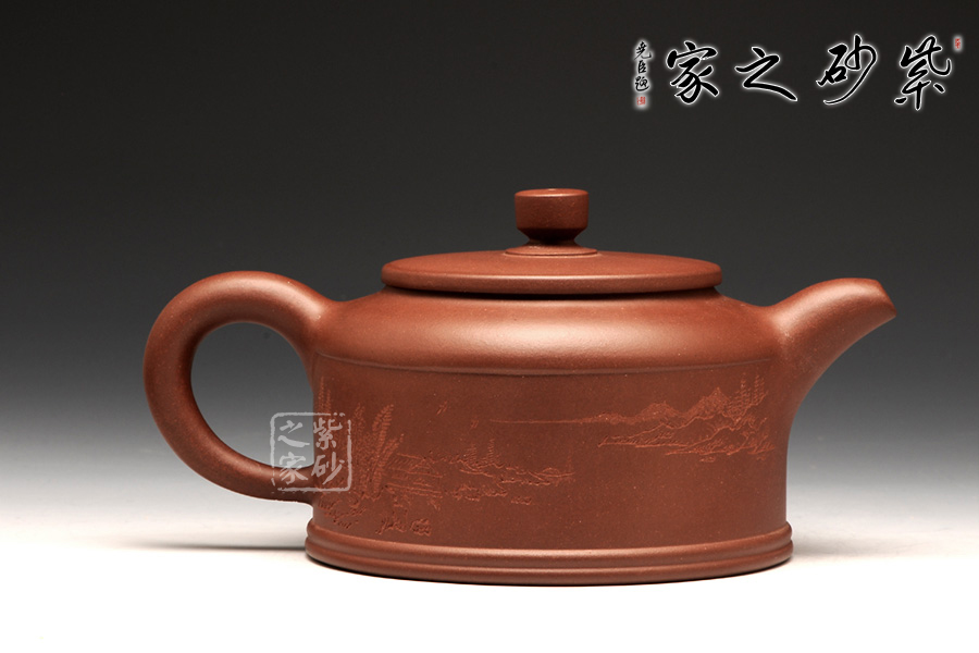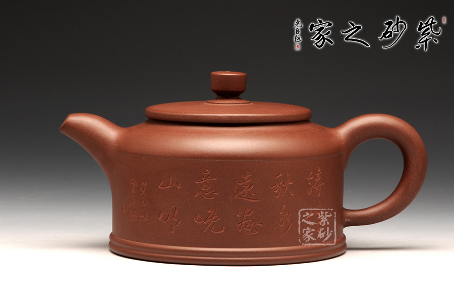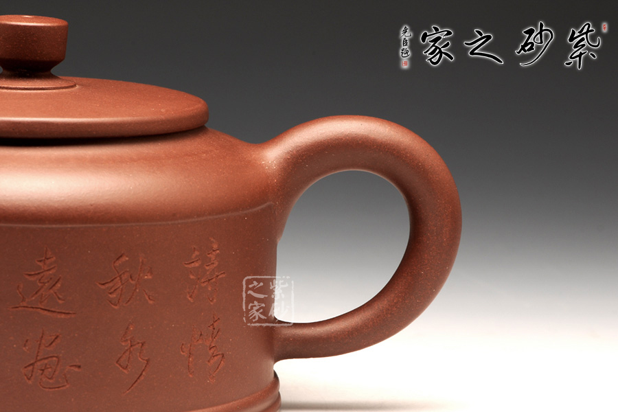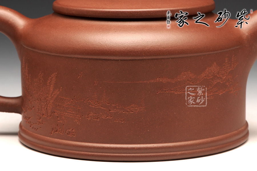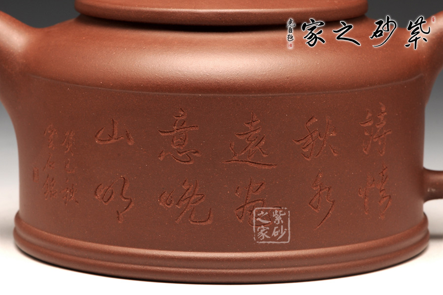 刻繪的詩詞“詩情秋水遠,畫意晚山明”非常精煉動人,而山水畫面則正是詩詞的寫照,整把壺讓人賞玩無盡。