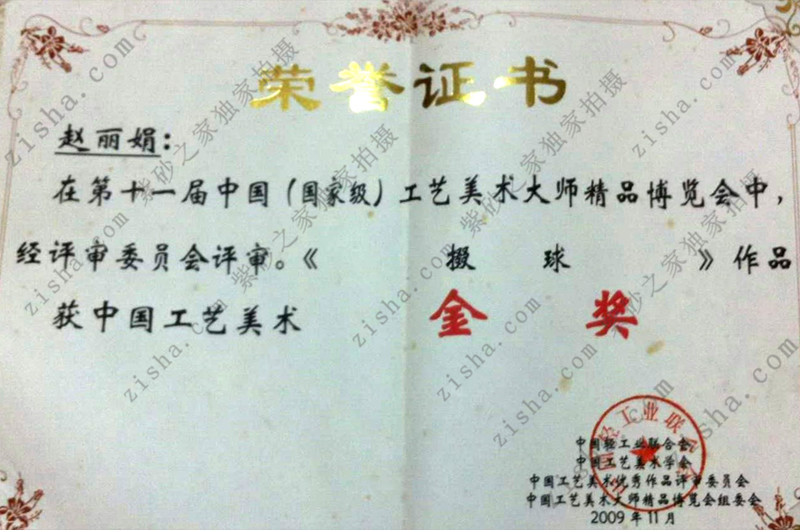 2011年5月 作品《隱角竹鼓》獲得“2011河南第三屆紫砂藝術節(jié)”金獎