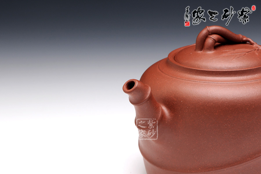 潘明星的這款竹韻飄香,可謂是形到韻佳。整把壺是經(jīng)典的竹節(jié)器型,但是在傳統(tǒng)的基礎(chǔ)上有了很大的創(chuàng)新。首先壺身方中帶圓,剛?cè)嵯酀?。壺身處由上斜至下的線條,幾分力度中帶著些柔和,仿若仿若隨風(fēng)搖曳的竹子。壺嘴和壺把皆修長窈窕,俊俏有力。壺鈕為一枝鮮嫩竹子彎曲而成,具有鮮活的生命力,該壺,韻味無窮。
