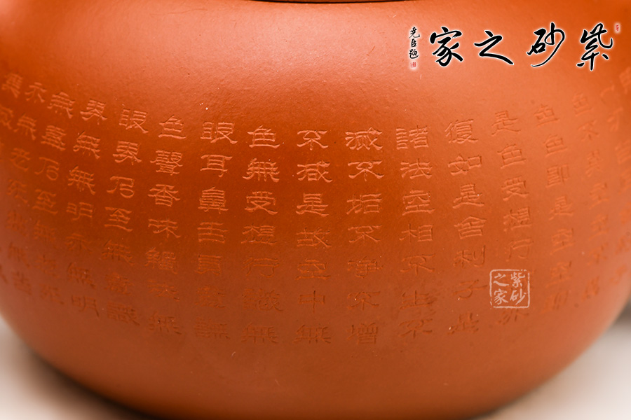 西施壺是紫砂壺中的經(jīng)典器型,而此壺選用原礦朱泥制作而成,更顯清雅別致。此壺在經(jīng)典器型的基礎(chǔ)上重新演繹,別有一番風(fēng)韻,環(huán)刻《般若波羅蜜多心經(jīng)》小品壺西施,精巧可人令人愛(ài)不釋手,以此壺沖茗,取“茶禪一味”之意,茶中有禪機(jī),禪中有茶香。