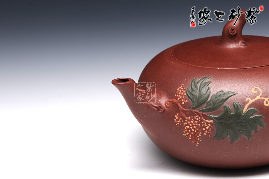 此壺充滿閑適、舒展、輕松的情態(tài),線條與器型都流露出閑適之情,同時泥繪葡萄裝飾與之應和。逸趣橫生,把玩與使用皆備。