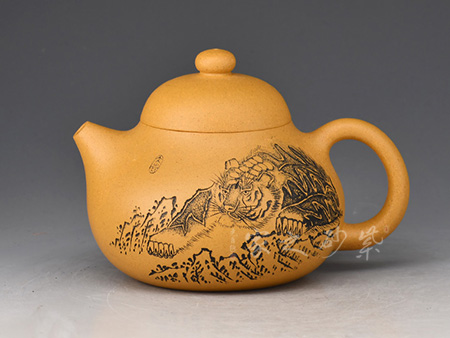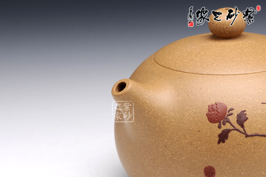 泥性:感甜嫩綿密,質(zhì)堅(jiān)而溫潤(rùn),呈近田黃色調(diào),為江蘇宜興趙莊山系朱泥礦~黃石黃之共生礦,經(jīng)挑揀練製而成,因含鐵量只達(dá)6%左右,致陶之后呈“金田黃色”。