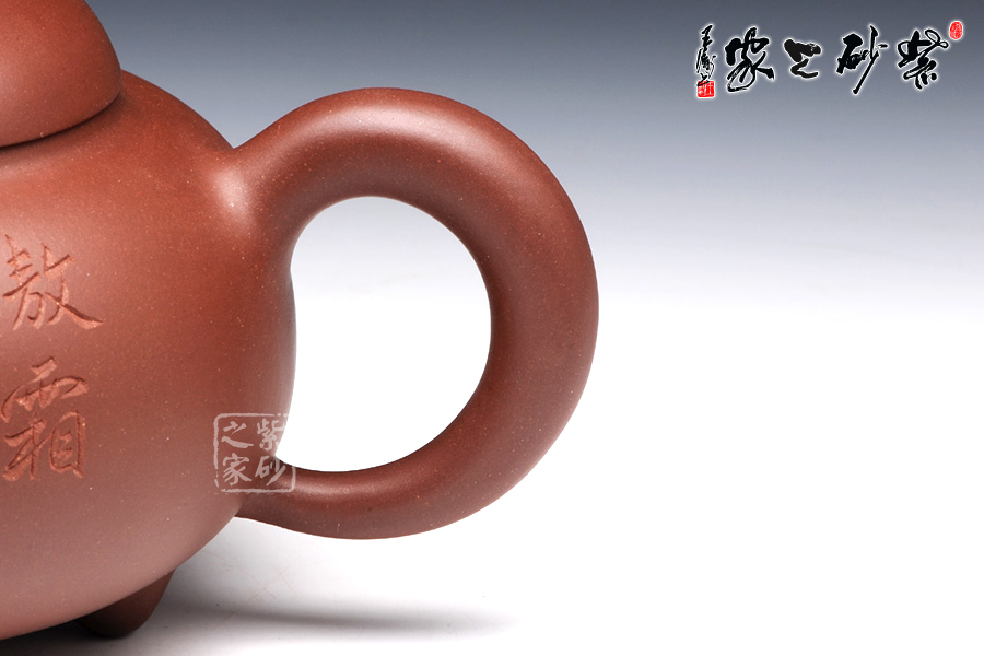 此壺飽滿圓潤,做工精湛,壺身造型十分經典古雅,同時增添了動感,飽滿的壺嘴與壺把同壺身呼應,整體協調統 一;壺身圓潤飽滿,上斂下豐,如花苞之形,加底簡約與壺身暗接溫婉,壺口微斂,壓蓋纖柔,蓋面飽滿,壺鈕扁圓,壺嘴昂揚向上,嘴口圓潤,出水流暢,暗接端把如新月之形,緊貼壺身,扣握舒適。