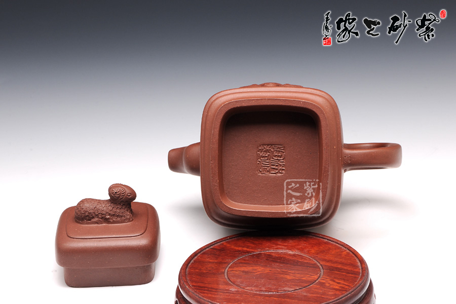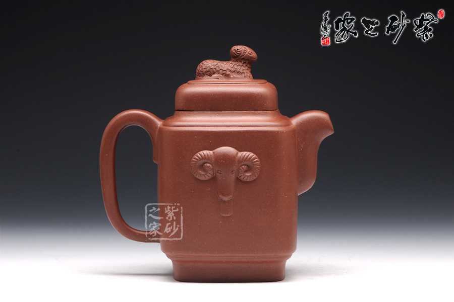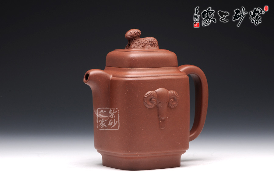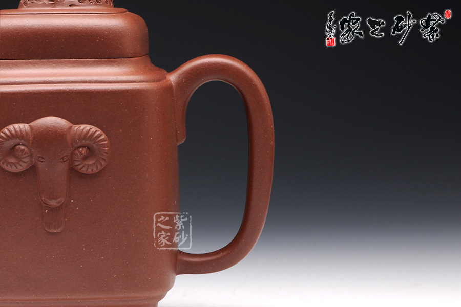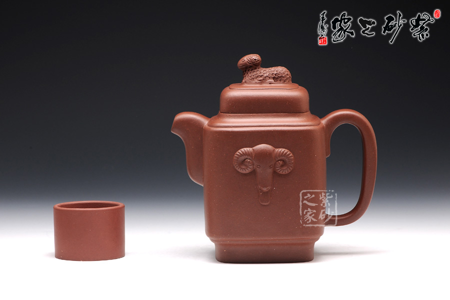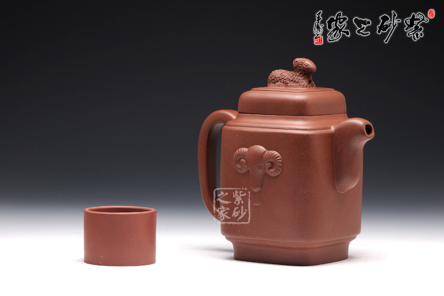 三羊開泰壺樸雅自然,以方器入型,表現(xiàn)出紫砂的沉穩(wěn)和寧靜感受。