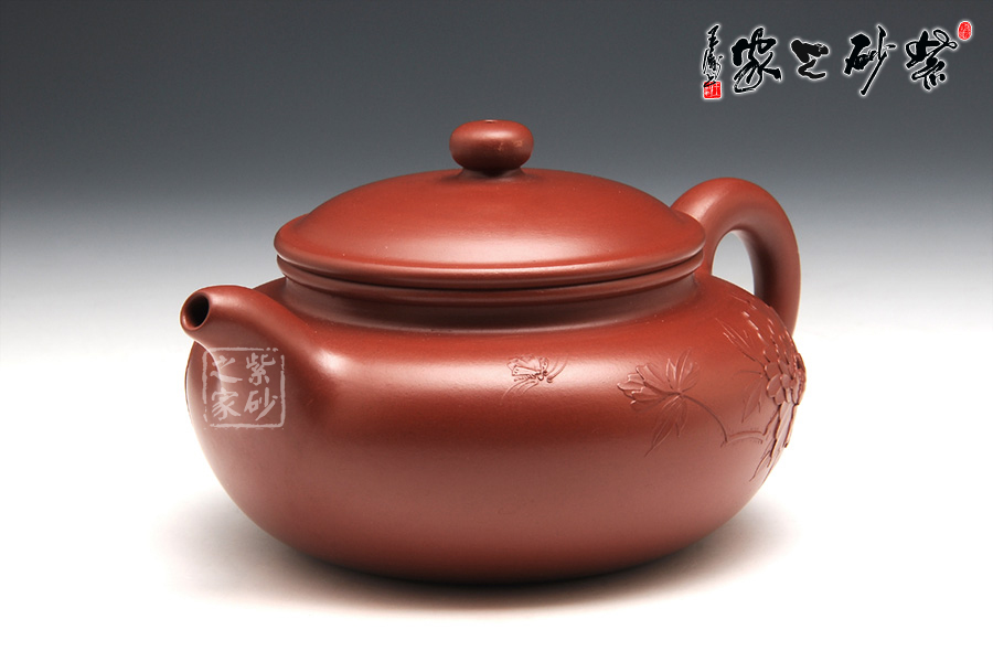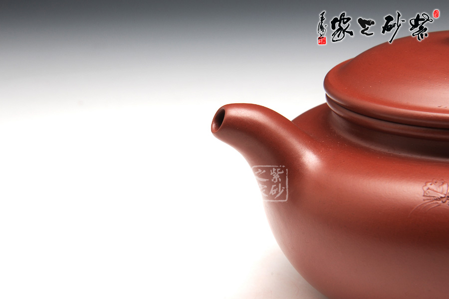 特點:質(zhì)感綿密、緊實細(xì)緻,持之扎實沉重、紅潤豔麗,泥中極品,無以倫比;泥胚含少許原礦顆粒,沖淋熱水后色變極大,呈紅中帶紫,養(yǎng)壺易現(xiàn)“包漿”之美。
