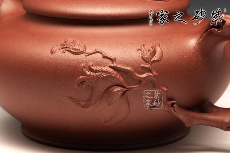 此壺以圓器為底,以佛手為型,演繹的紫砂趣味著實(shí)動(dòng)人。