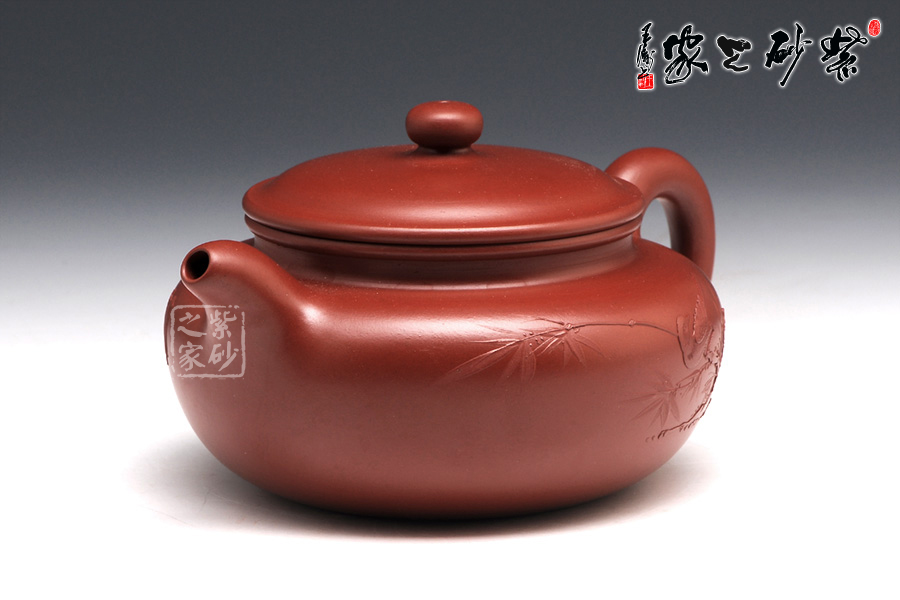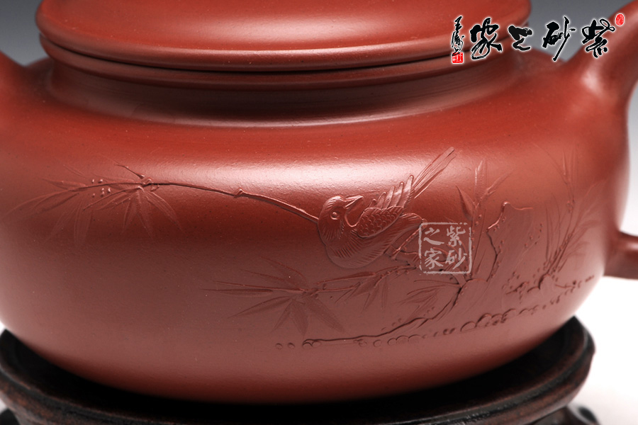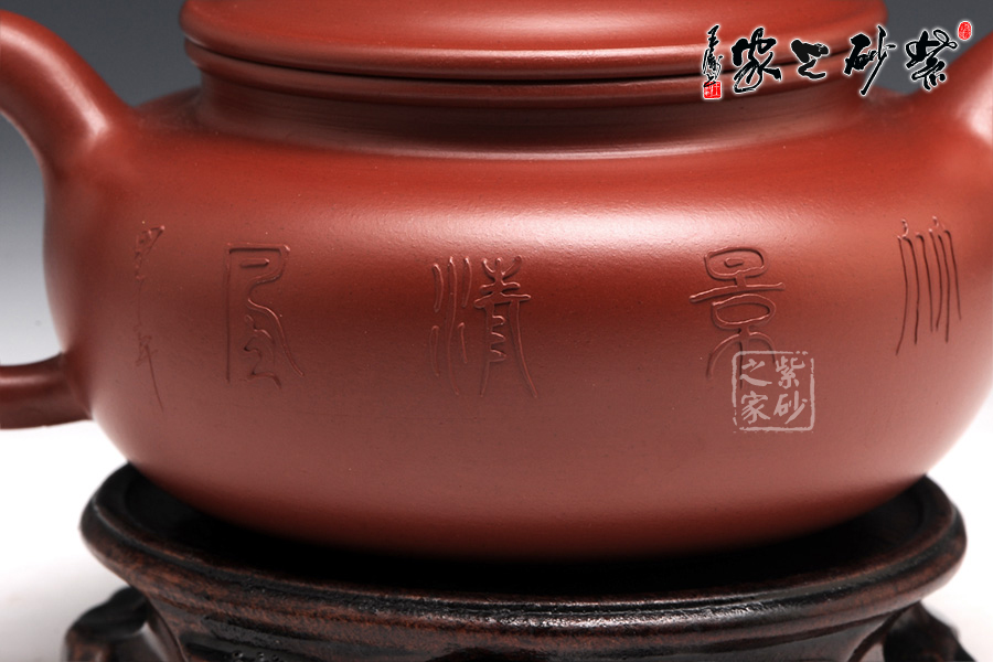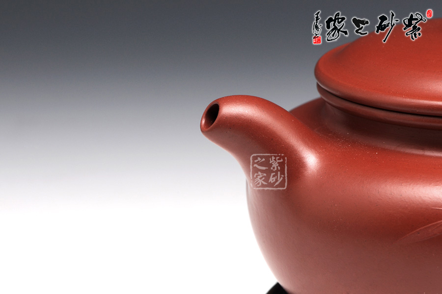 特點:質(zhì)感綿密、緊實細(xì)緻,持之扎實沉重、紅潤豔麗,泥中極品,無以倫比;泥胚含少許原礦顆粒,沖淋熱水后色變極大,呈紅中帶紫,養(yǎng)壺易現(xiàn)“包漿”之美。